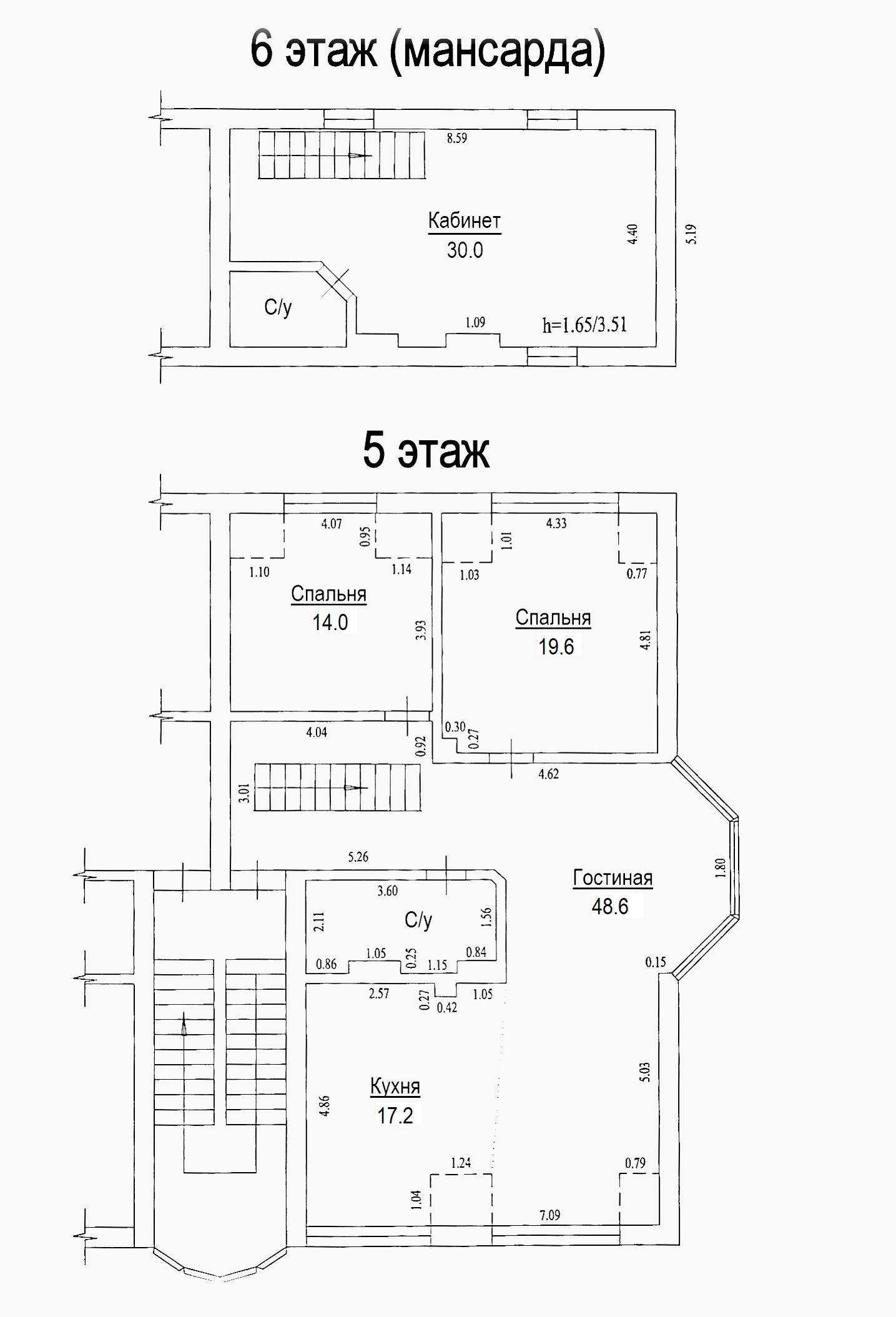 Высота потолков 3.5 м