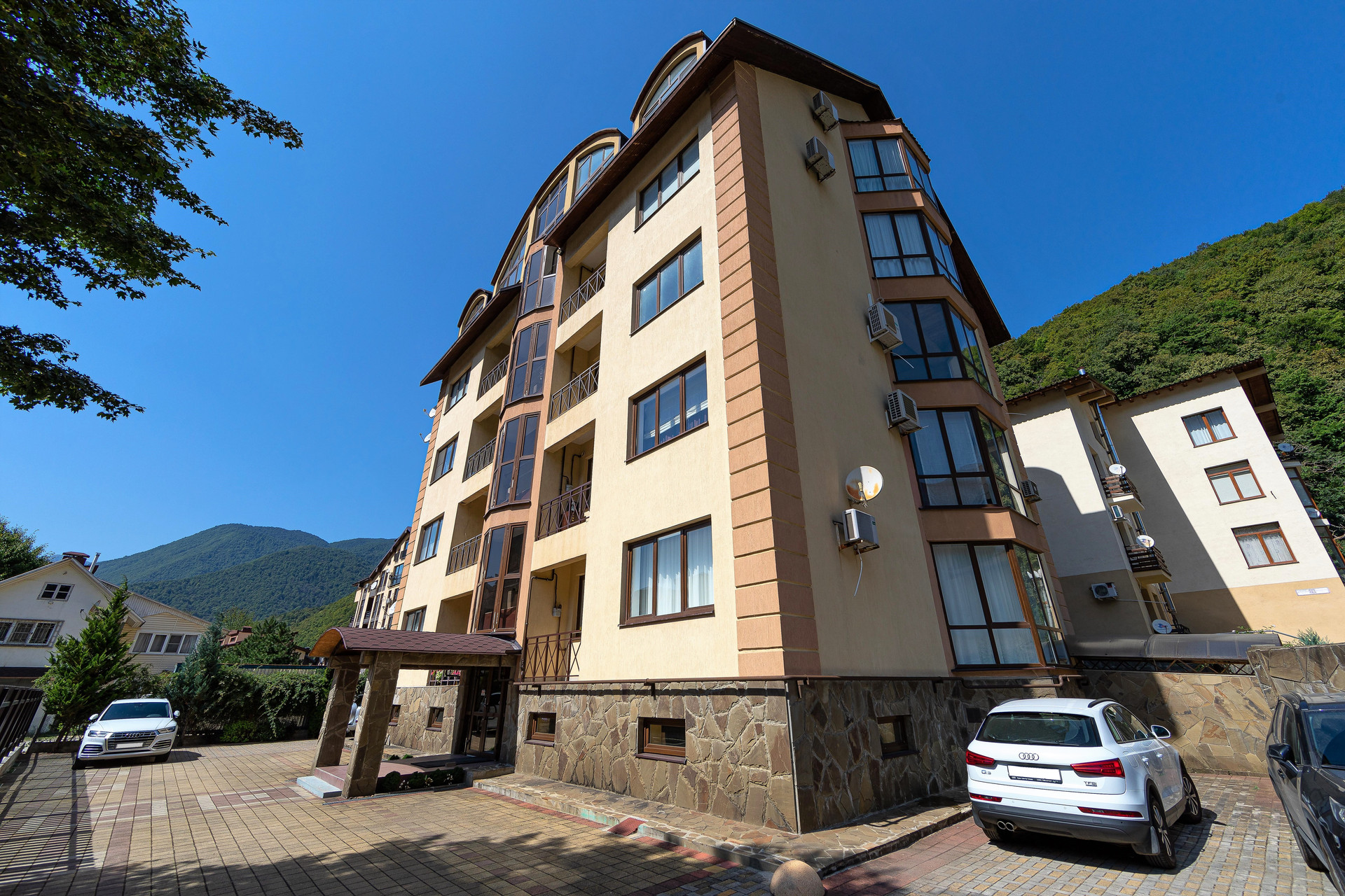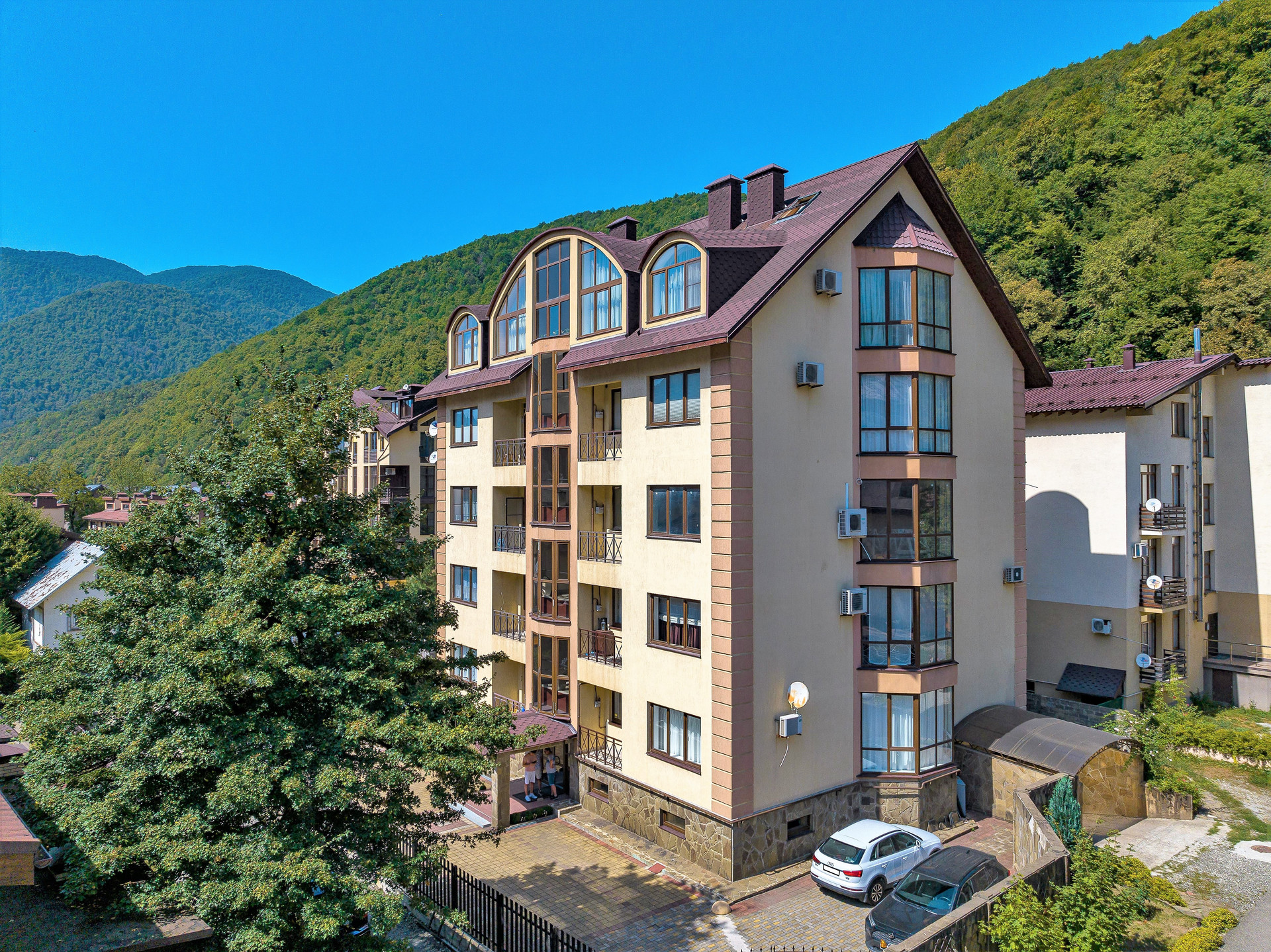 «Архитектурная жемчужина» Красной Поляны! Клубный дом на 10 квартир! До подъёмника реально 5 минут пешком - всего 215 метров!