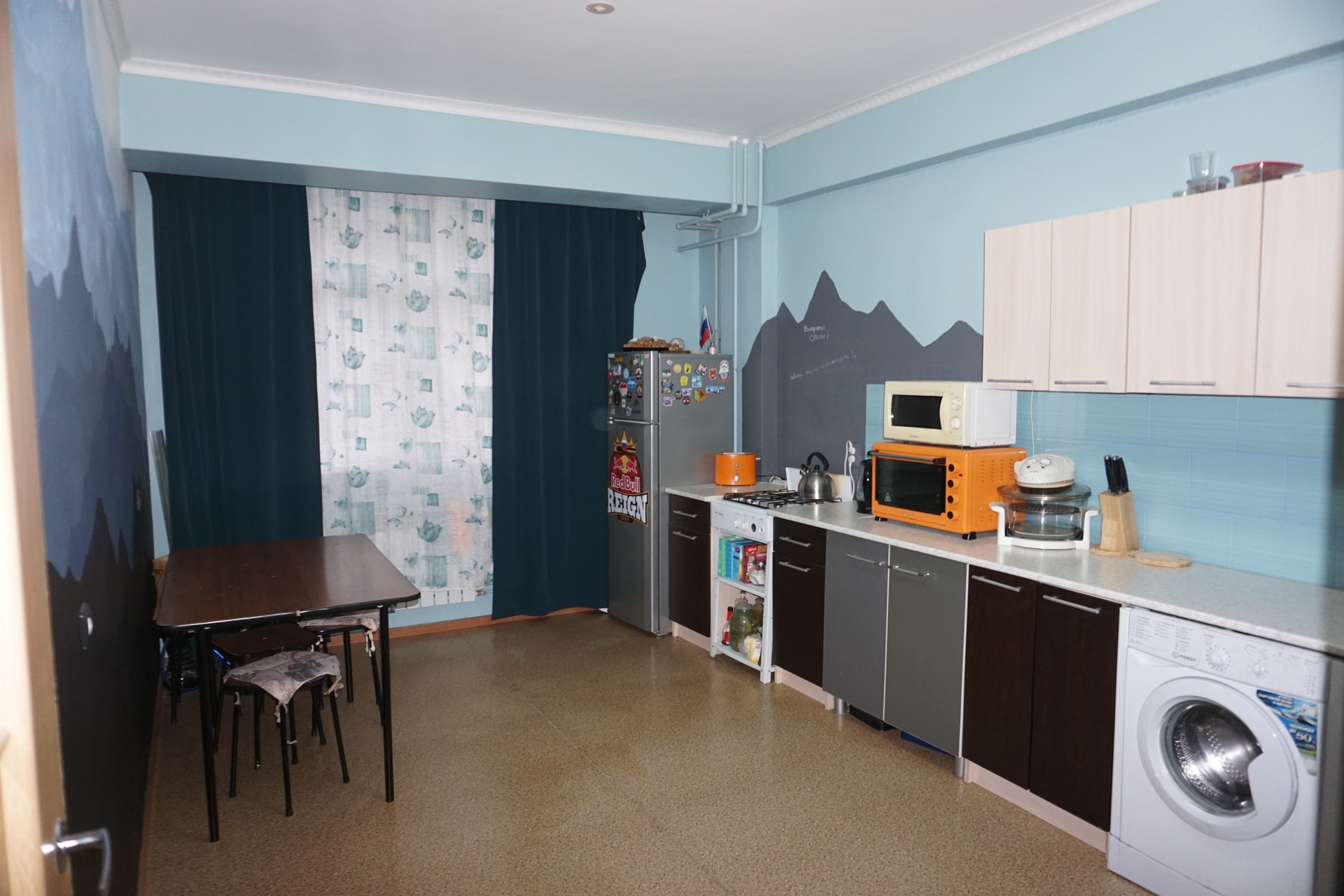 Квартира расположена на 1/5 этаже. Окна выходят на небольшую придомовую территорию, просторный подъезд с местом для горнолыжного инвентаря или колясок. Комнаты большие, изолированные, просторная кухня.
