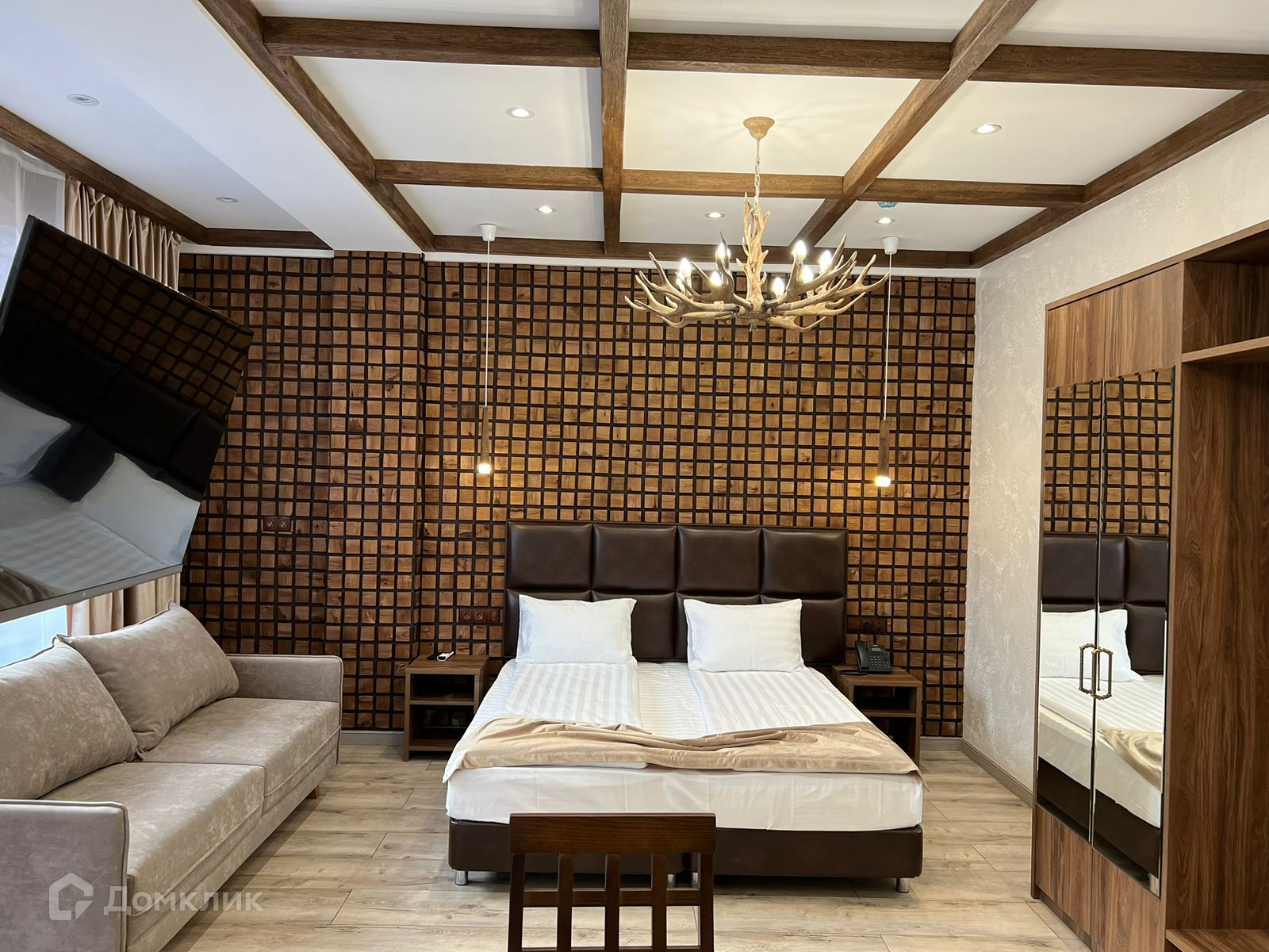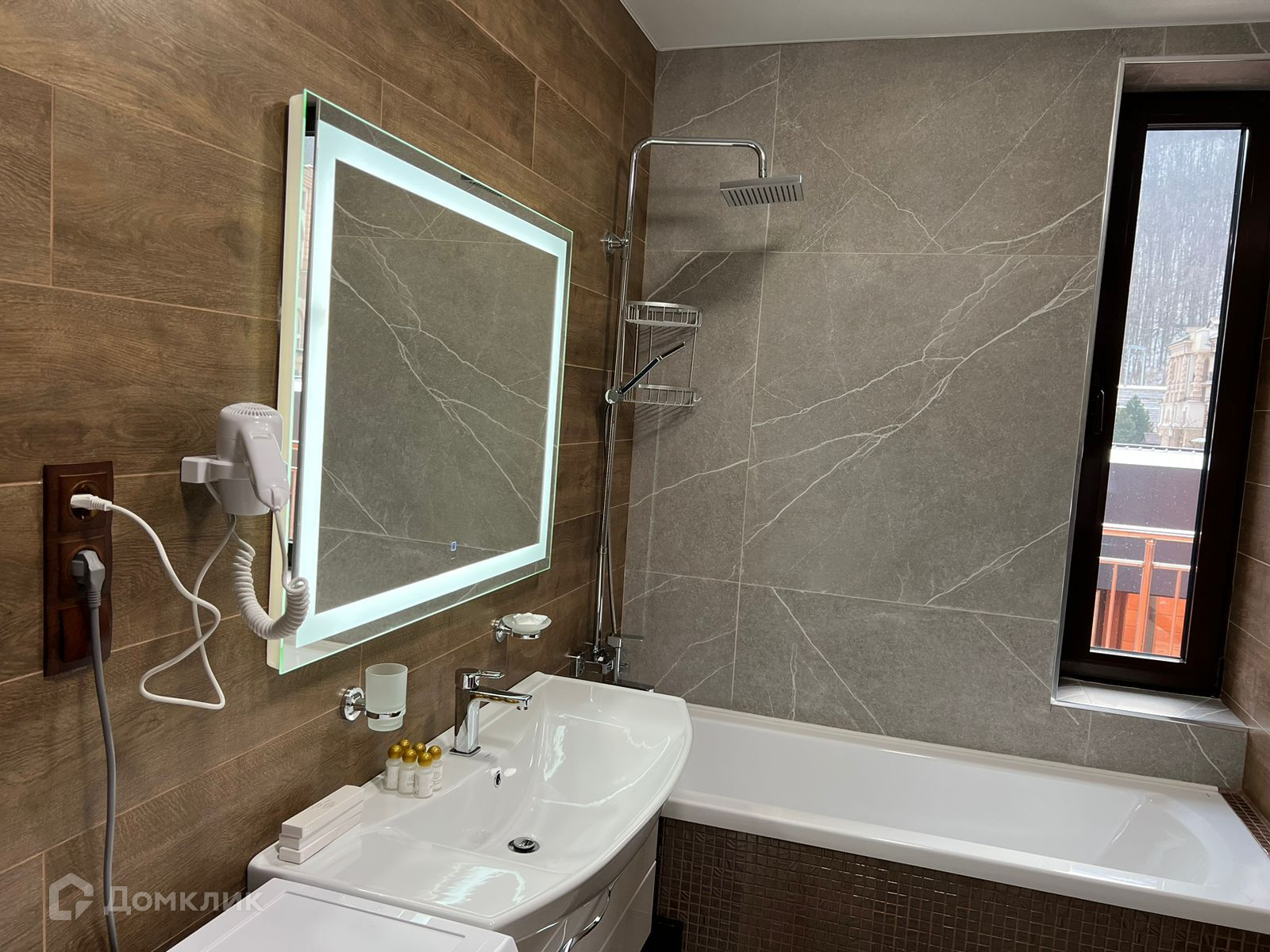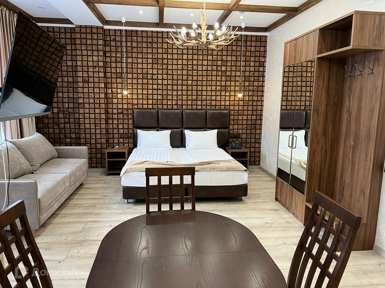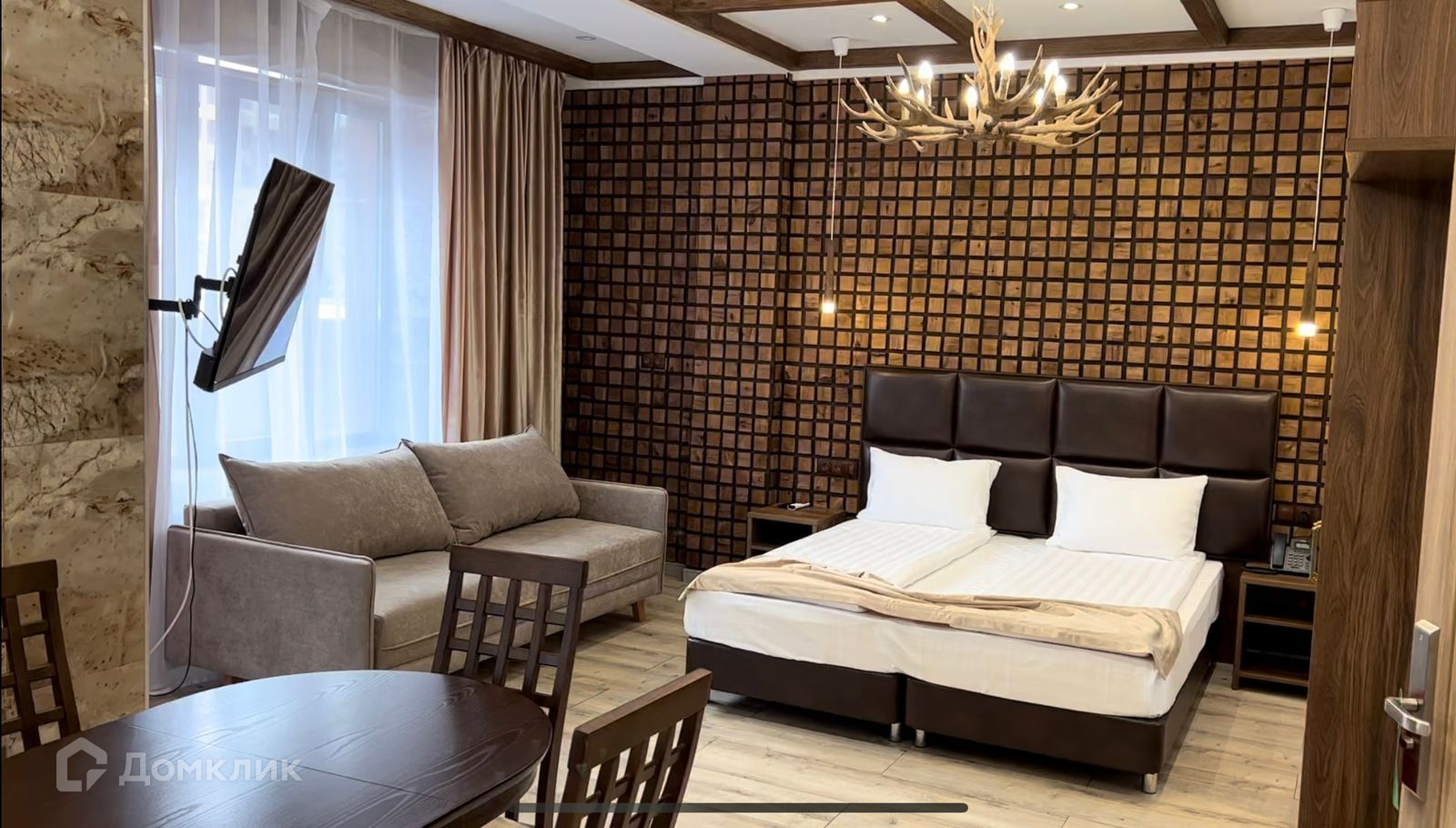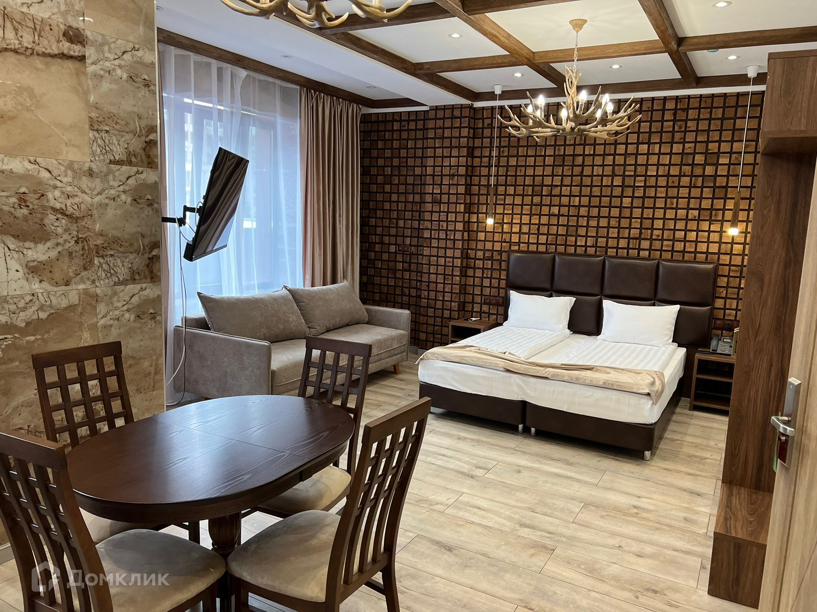 Апартамент полностью укомплектован мебелью и техникой, выполнен новый дизайнерский ремонт в стиле шале. Вид из окон на горы.