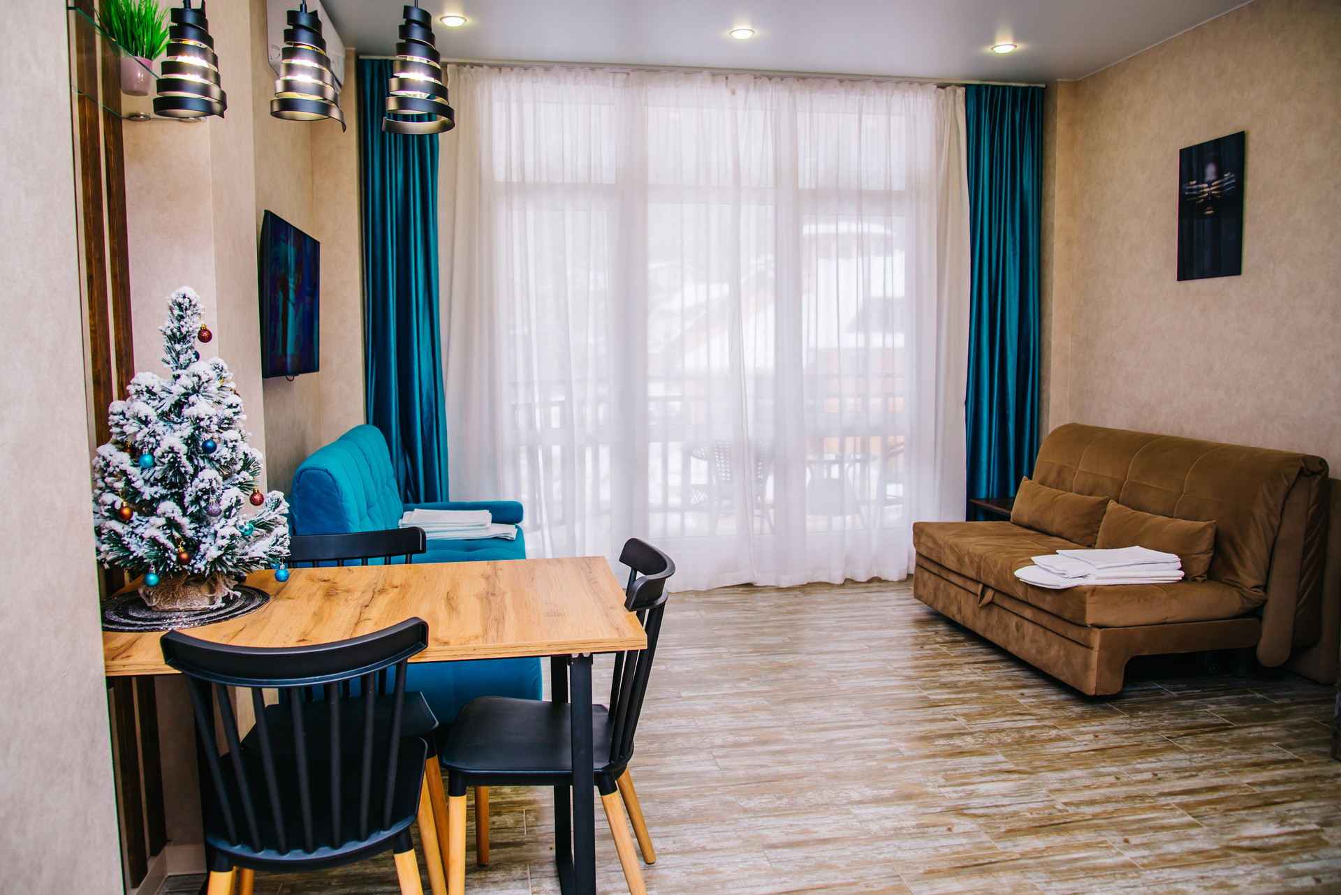 Спальные места - двухспальный диван-кровать и диван раскладной.