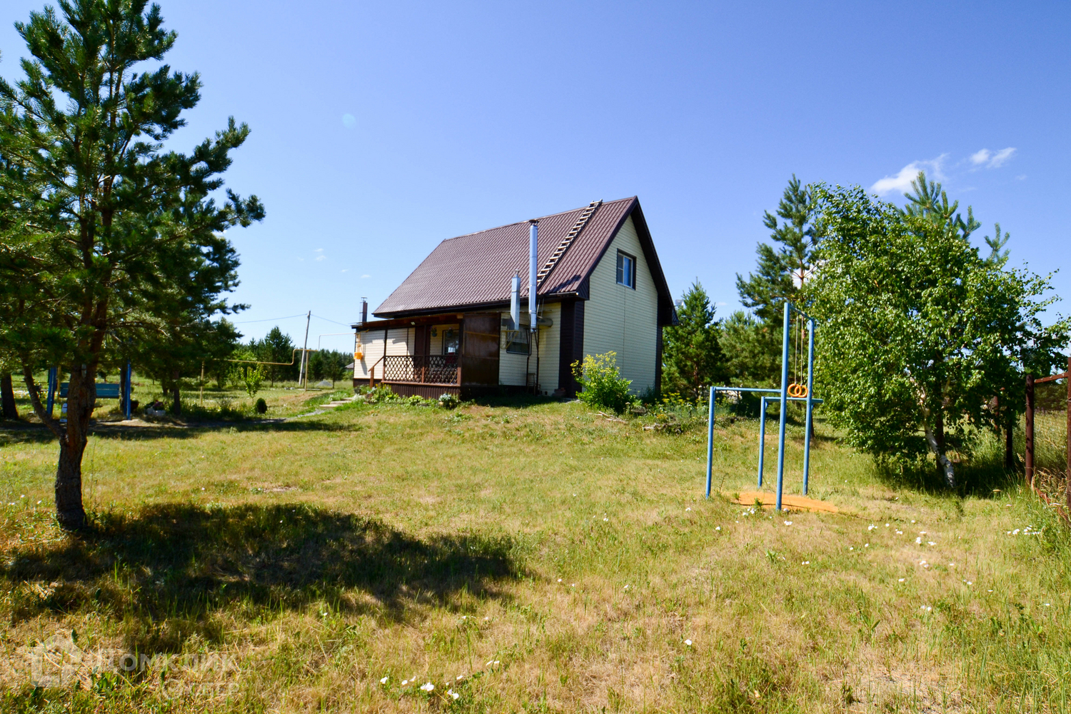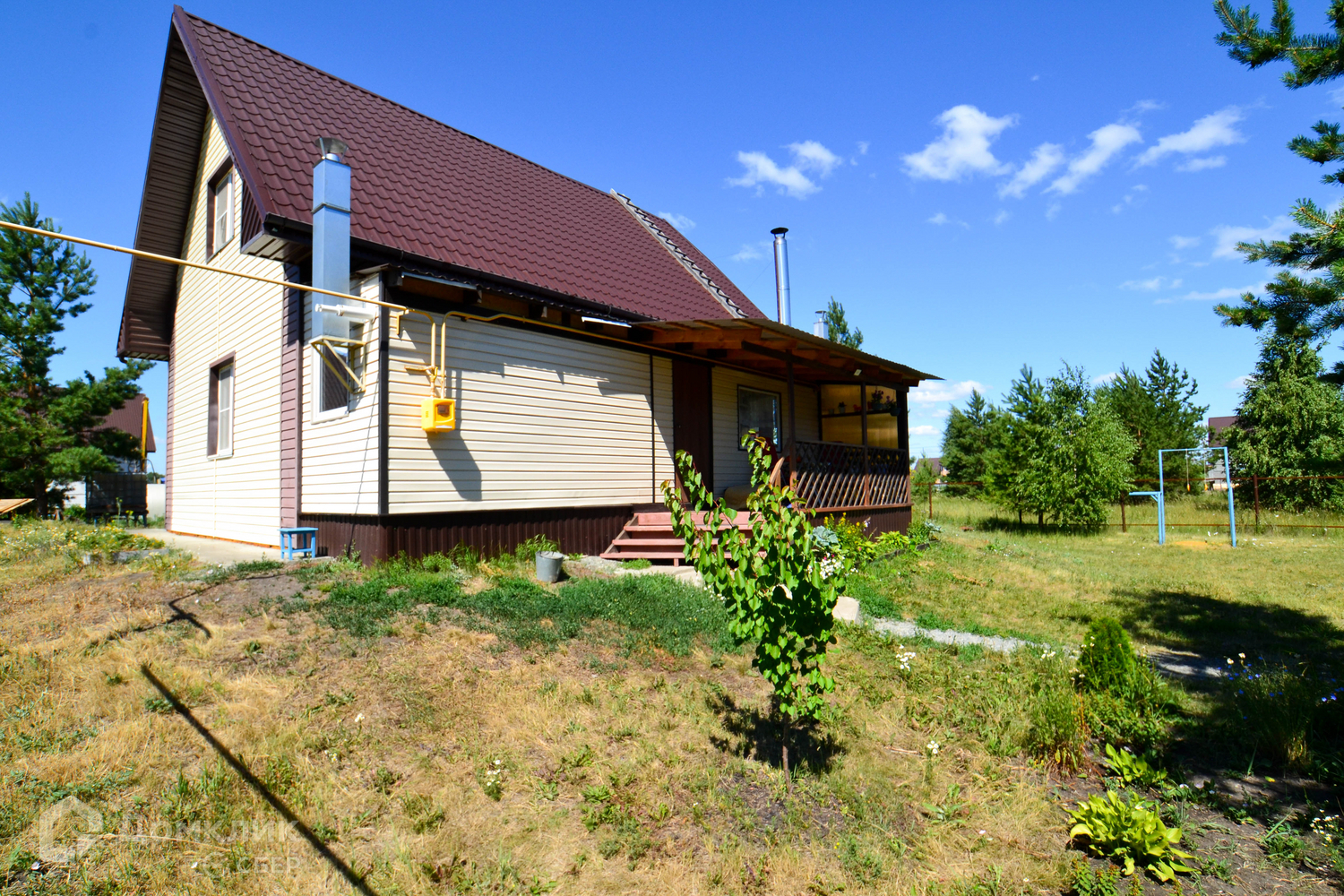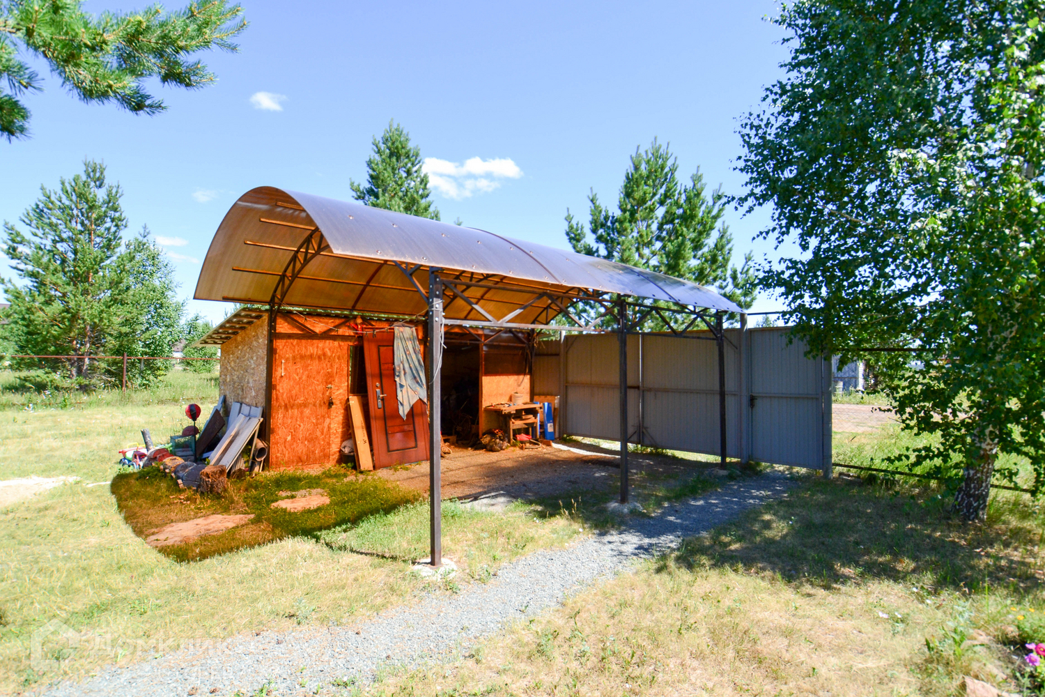 Участок огорожен забором из профнастила.