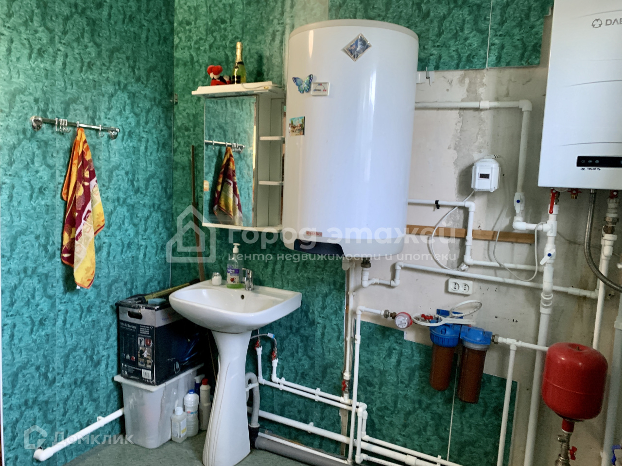 Газ, водяное отопление, скважина, сан.узел в доме.