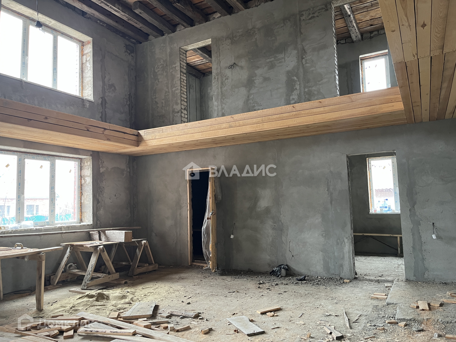 Двухэтажный коттедж с гаражом без внутренней отделки.