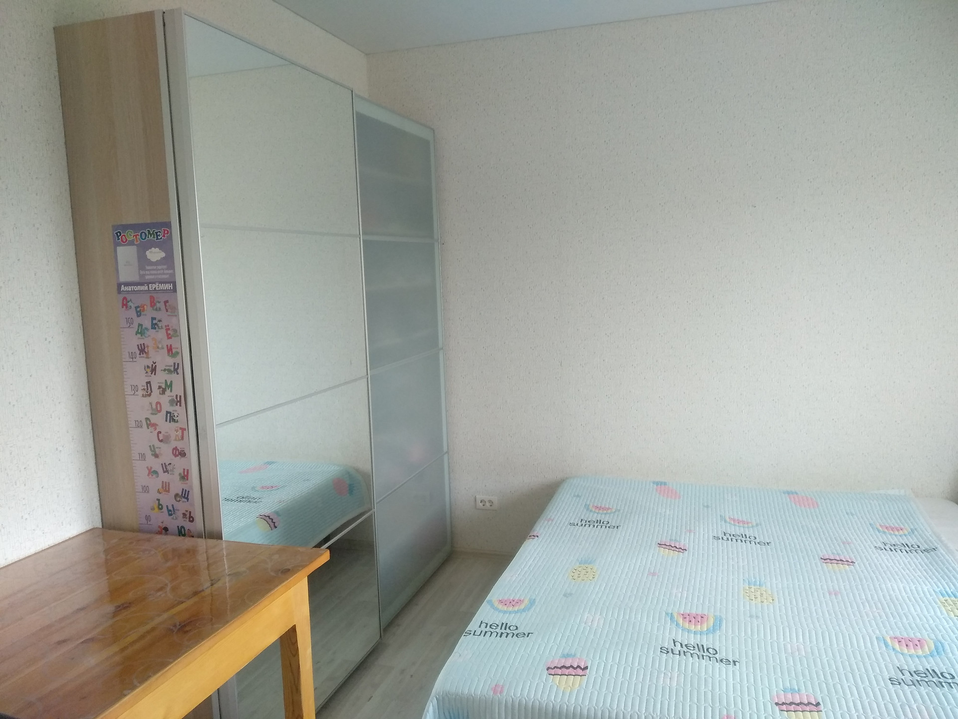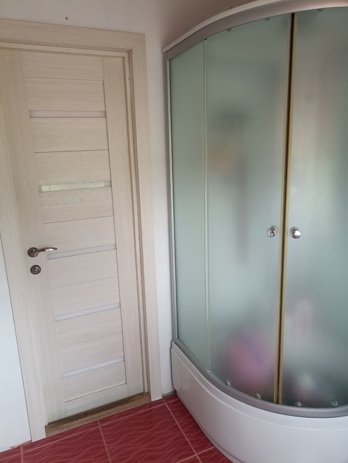 Первый этаж: просторная кухня-гостиная (40 кв.м.) с двумя окнами и одной балконной дверью, которая может служить выходом в сад (стены готовы под покраску или поклейку обоев, потолок не натянут, на полу ламинат, цвет сосна канадская). Спальня (14 кв.м.), установлен натяжной белый матовый потолок, на стенах обои, пол ламинат цвет молочный дуб. Так же на первом этаже ванная комната с унитазом, раковиной, и очень удобной душевой кабиной с глубоким поддоном (стены покрашены, потолок не установлен, на полу плитка и регулируемый электрический теплый пол).