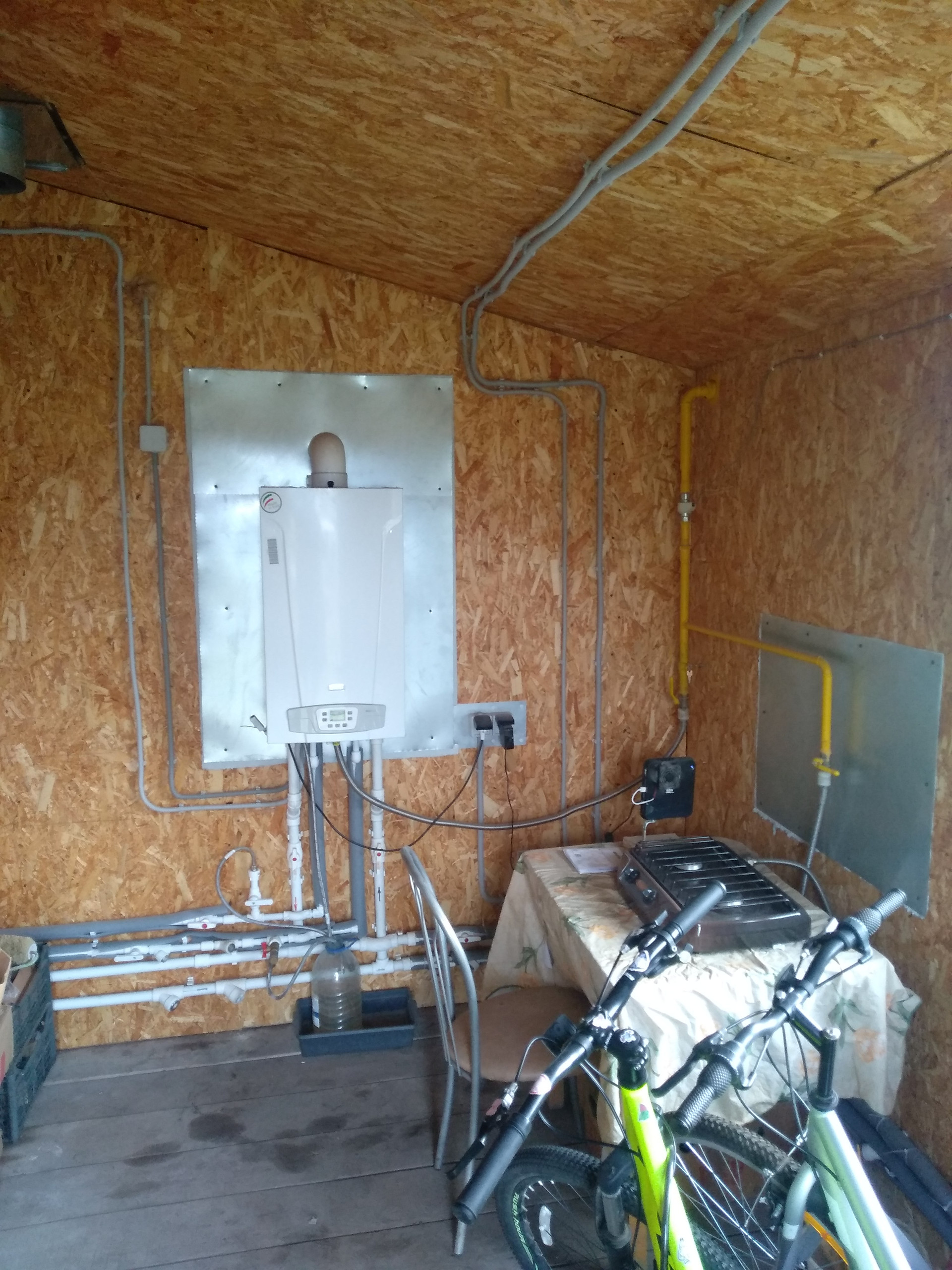 Дом газифицирован. Двухконтурный газовый котел Baxi-4S 24кВт. установлен в пристрое 12 кв.м., так же там имеется газовая плита, в доме плита электрическая. В котельной на первом этаже установлен электрический котел 12кВт (резервный). Предварительный нагрев ГВС до 45 градусов при помощи газового котла, до 60 нагревается и поддерживается в электронагревателе Termex (100л.), установленном в котельной дома. Водоснабжение: скважина 30м., с частотным преобразователем. Канализация - выгреб 10м3, откачиваем примерно раз в три месяца. Забор с одной стороны оцинкованный профнастил, по остальным сторонам оцинкованная сетка рабица. Ворота откатные, подвесные.