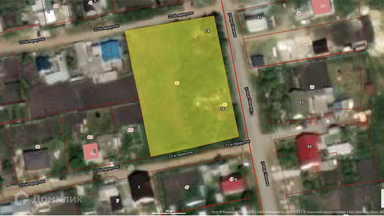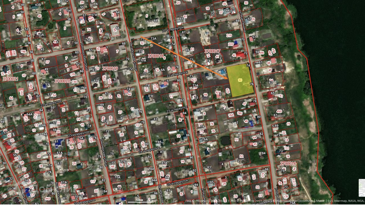 Участок прямоугольной формы 74х52 м. Размеры участка позволяют построить несколько домов.