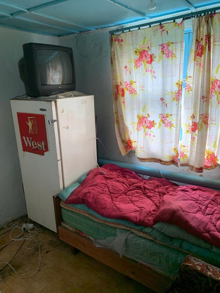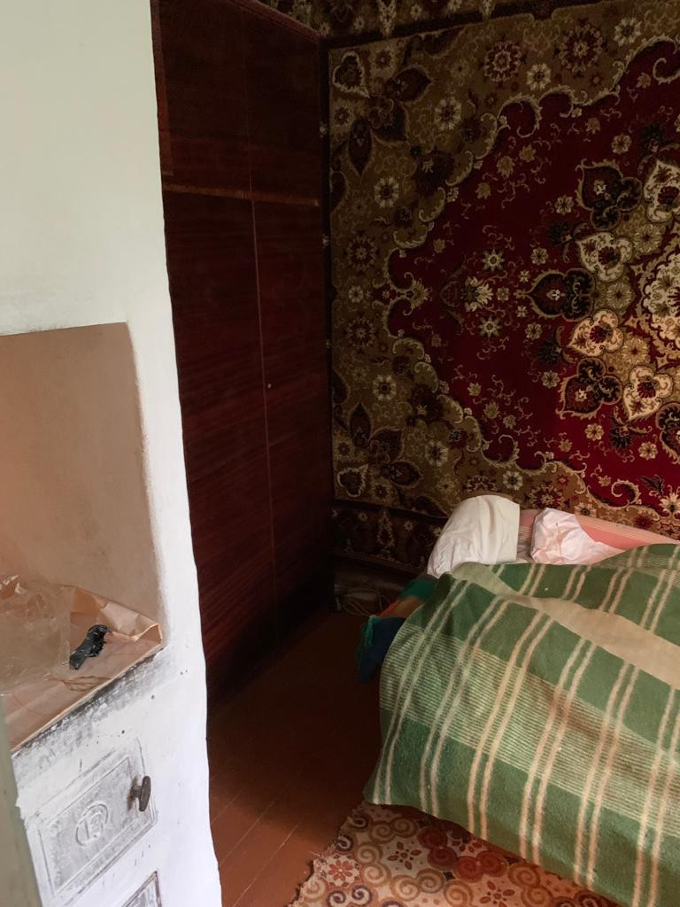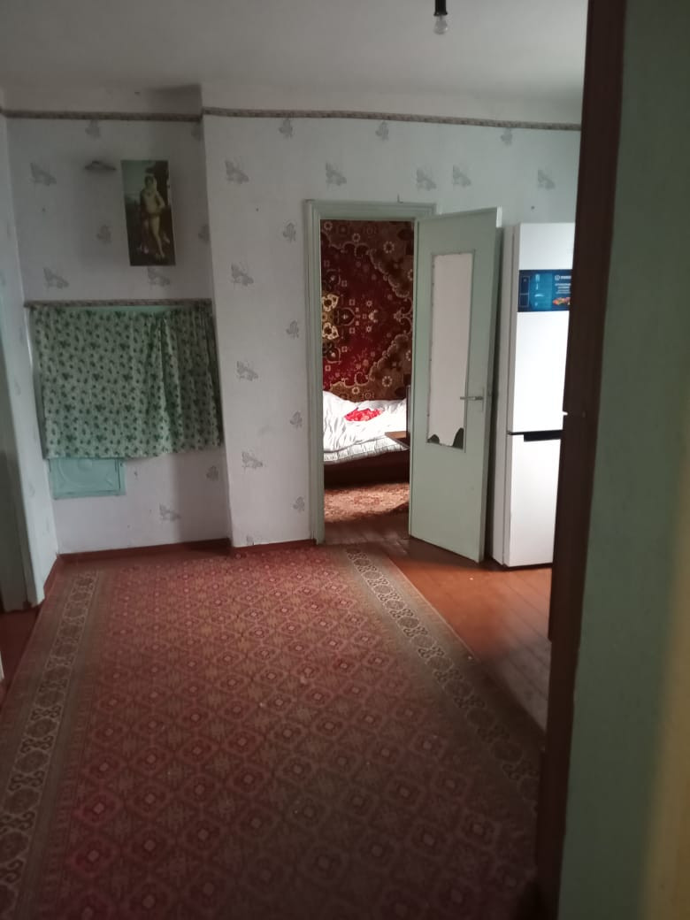 В доме 4 комнаты, ванная, туалет. Газ- котел, вода- колодец (насос). Окна и пол деревянные, в хорошем состоянии. Крыша - шифер, не течет. Во дворе есть времянка, которую можно переделать в гараж. Имеется большой, сухой погреб. Участок просторный. Огород не разработан, так как в данный момент никто не проживает.