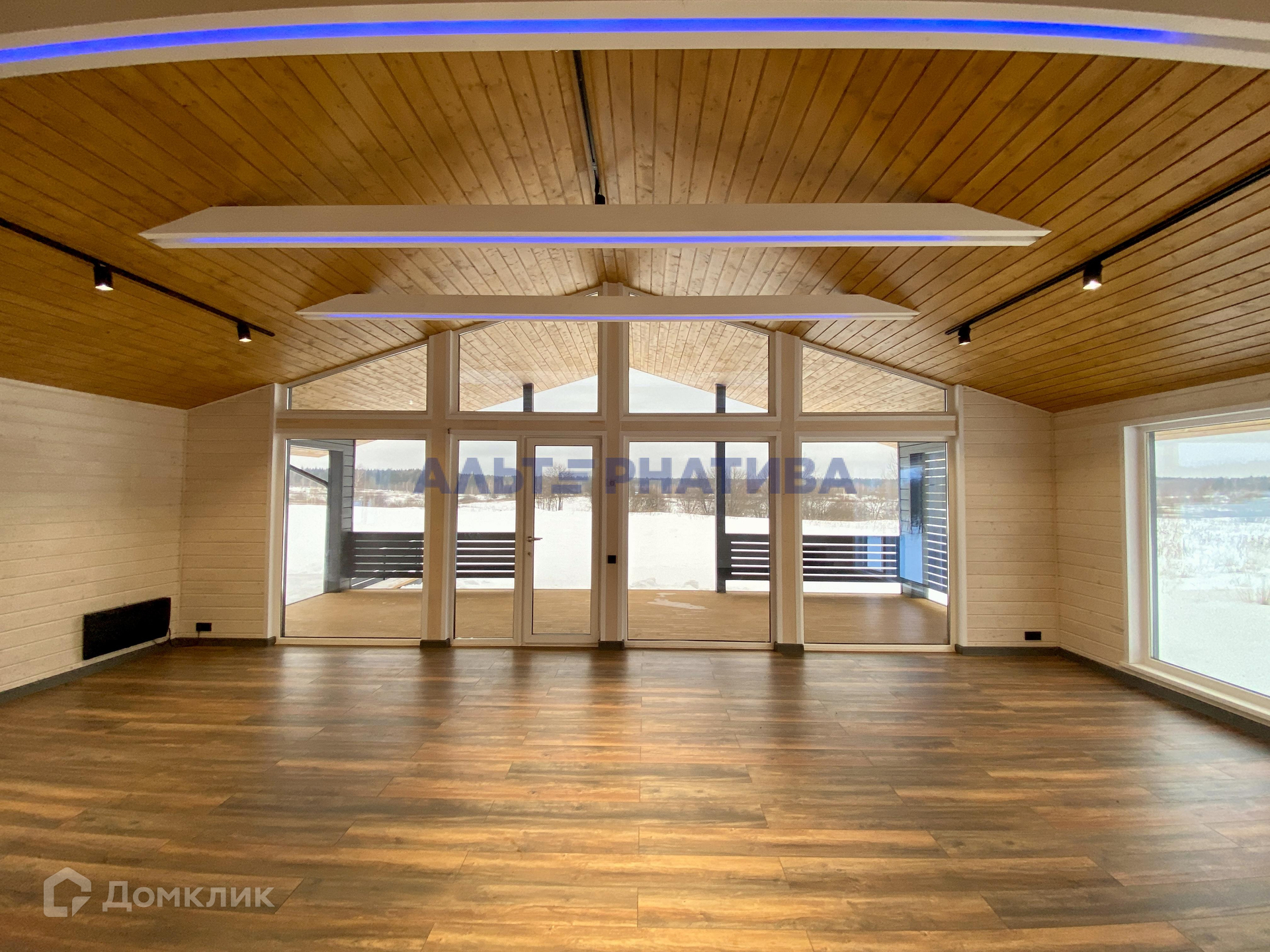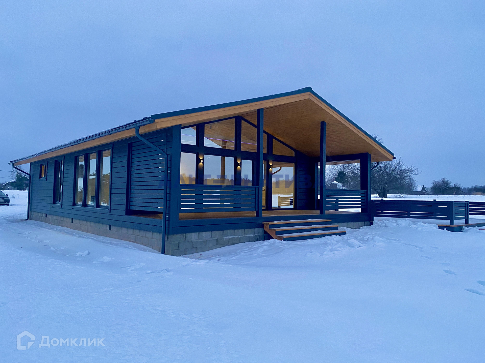 Планировка: прихожая (тамбур), санузел, просторная кухня-гостиная, 3 спальни с панорамным остеклением, котельная, терраса.