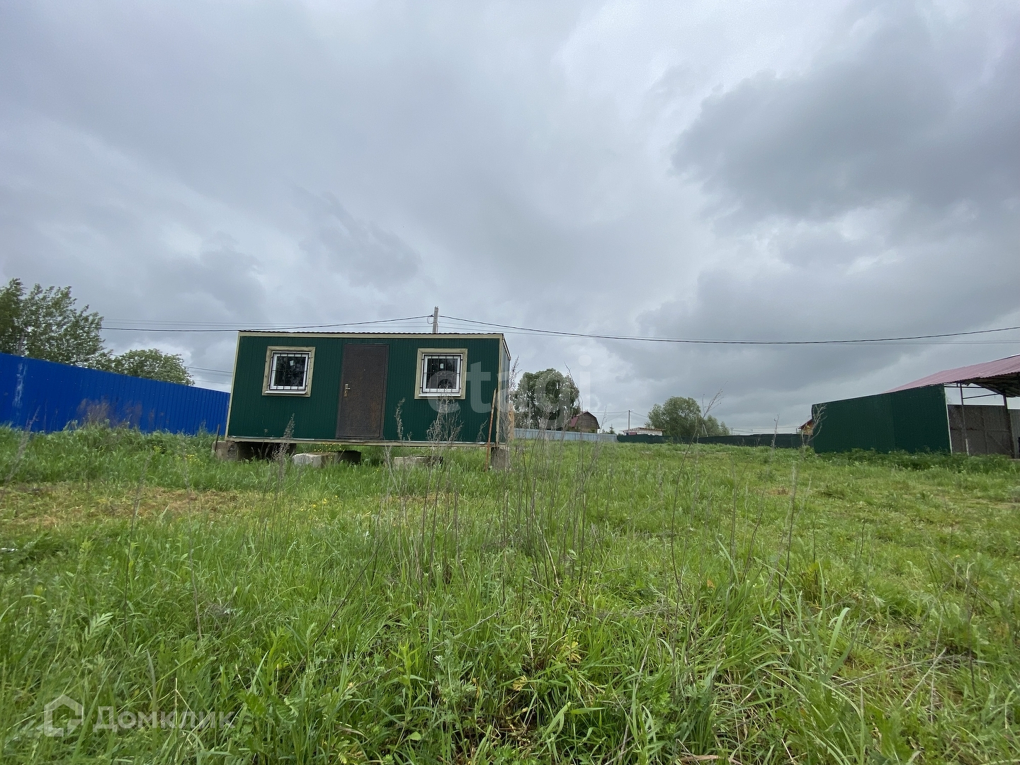 На земельном участке стоит зимняя бытовка 6 x 2.5 м (кухня, спальня; два пластиковых окна с решетками). По периметру устанавливается забор из профлиста.