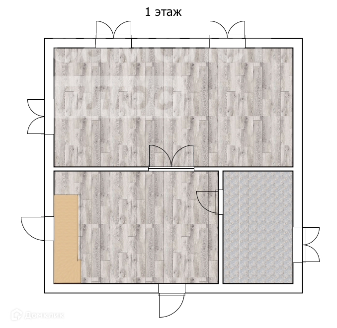 1 этаж - входная группа, санузел, кухня – гостиная, бойлерная.