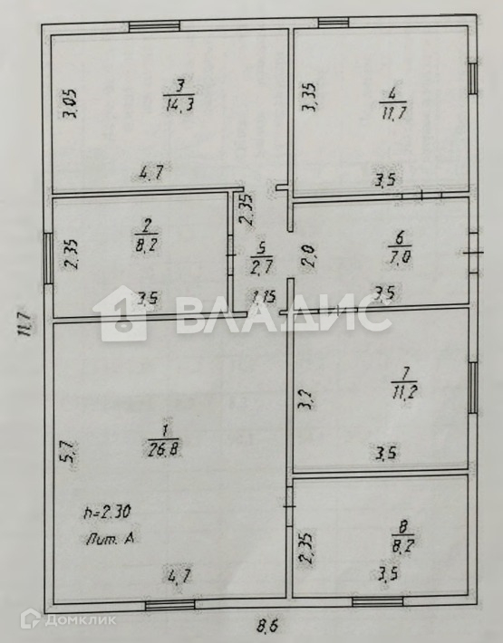 Высота потолков 2.6 м