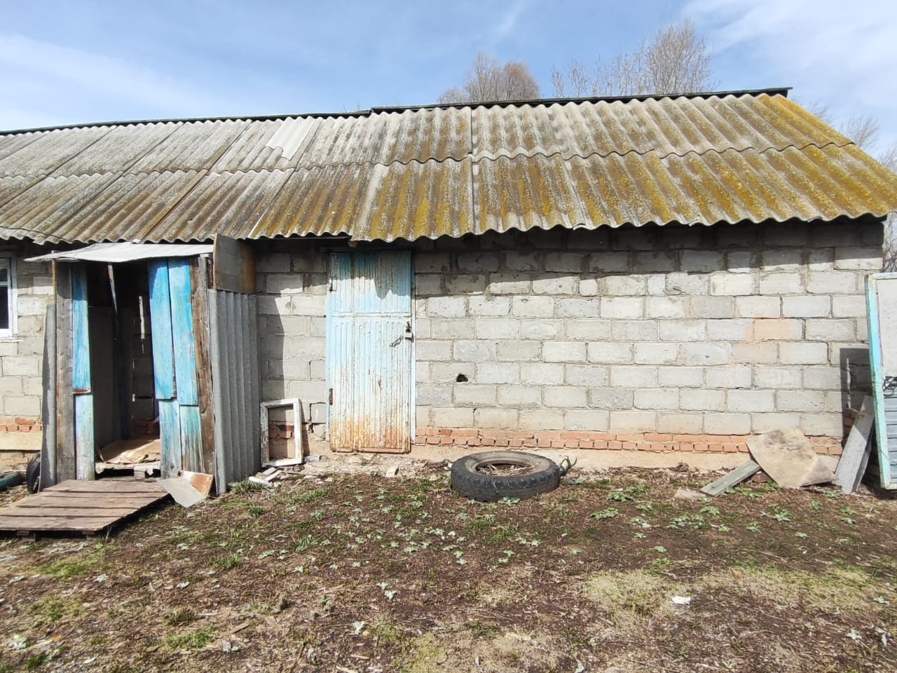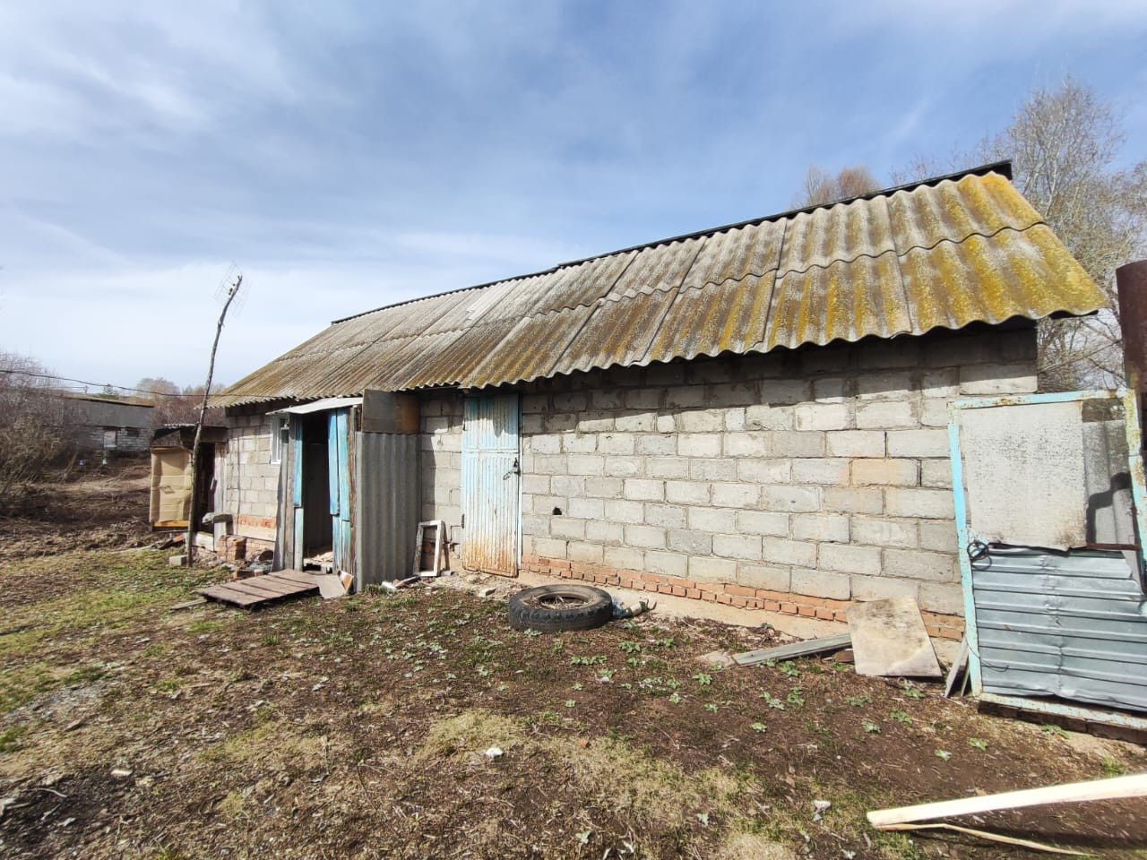 На участке есть новый гараж шлакоблочный.