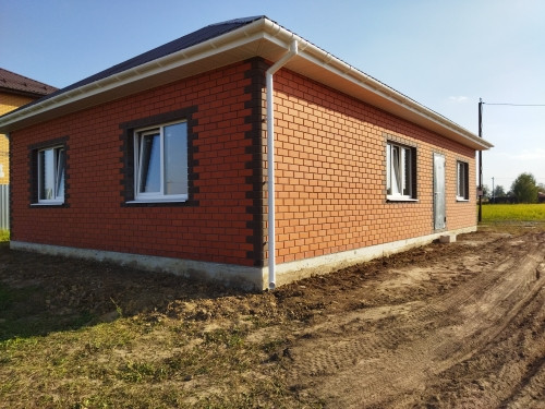 Фундамент - монолитная железобетонная плита. Стены из газосиликатного блока, утеплителя и облицованы кирпичом. Крыша металлочерепица.
