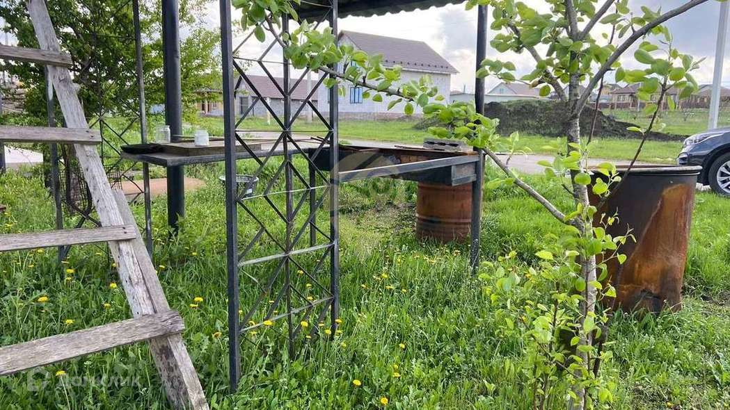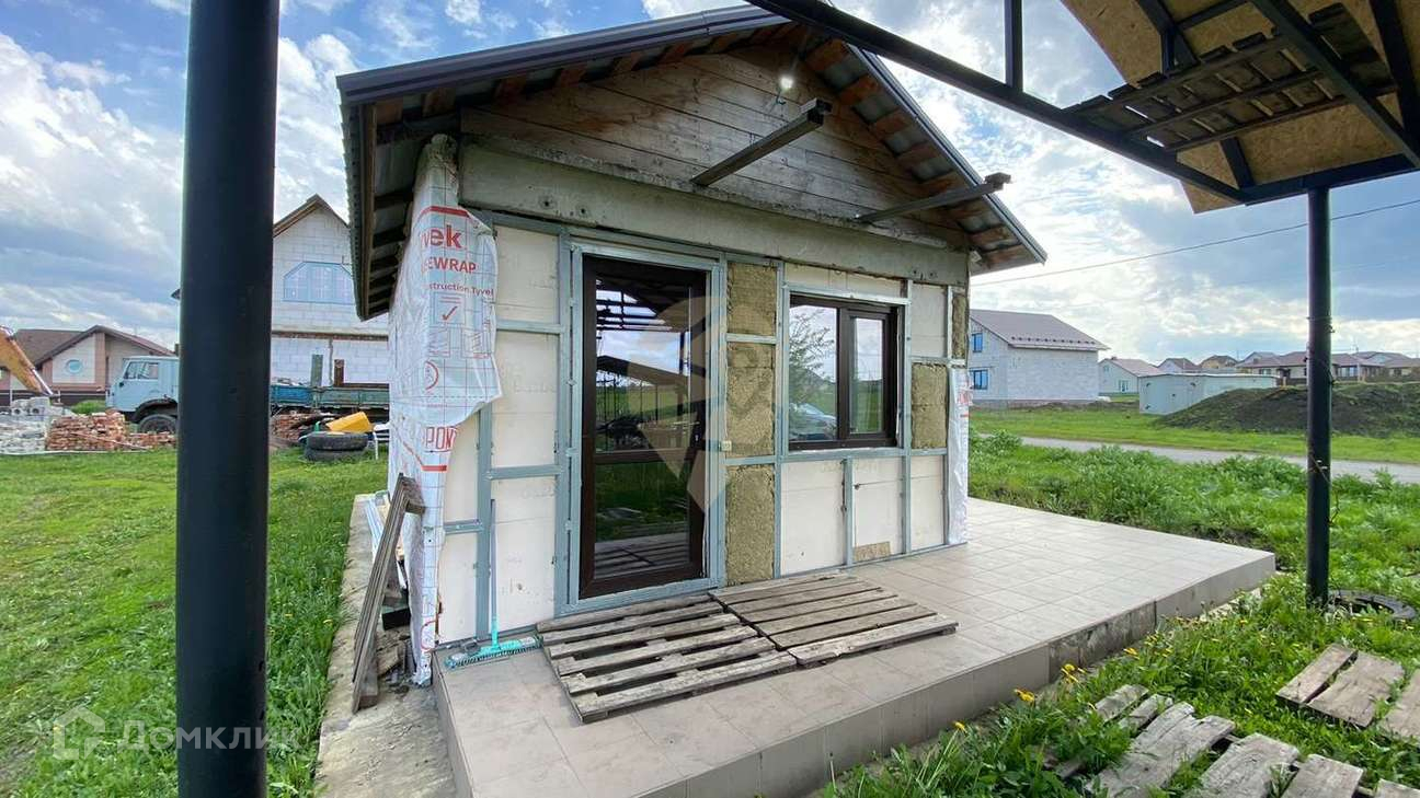 Закуплен материал на баню(сайдинг, древесина).Планировка:Кухня + гостиная с выходом на террасу.