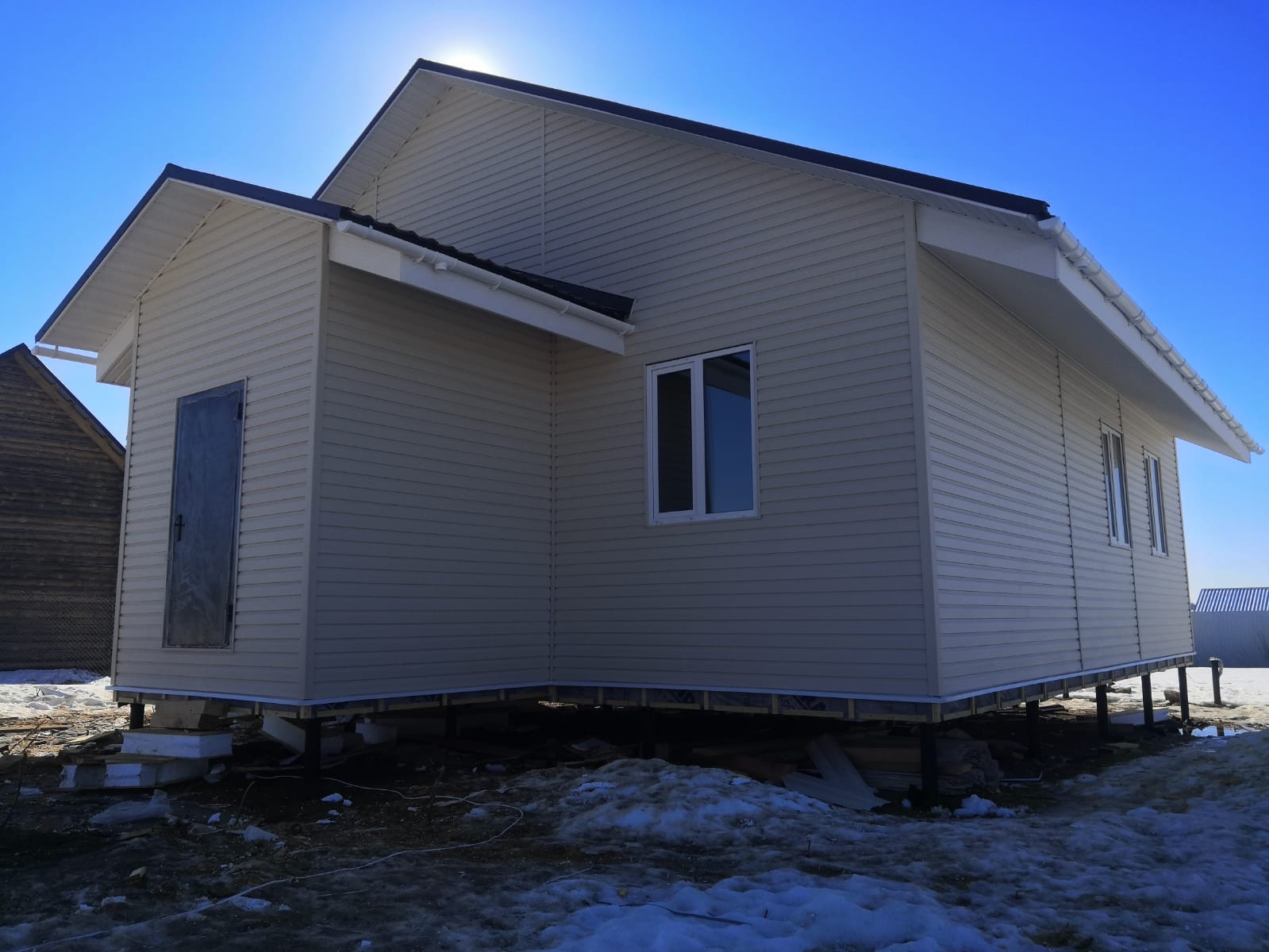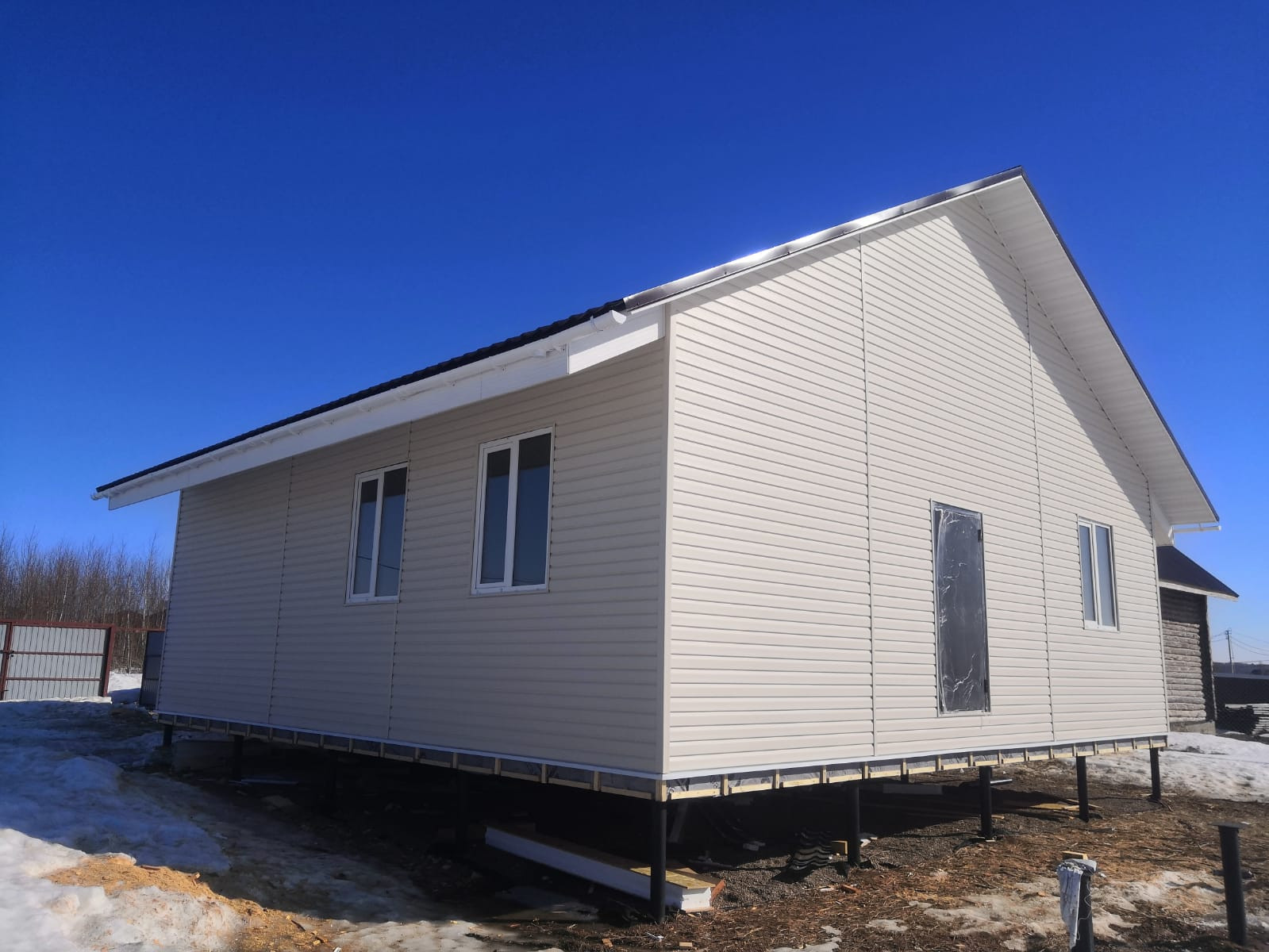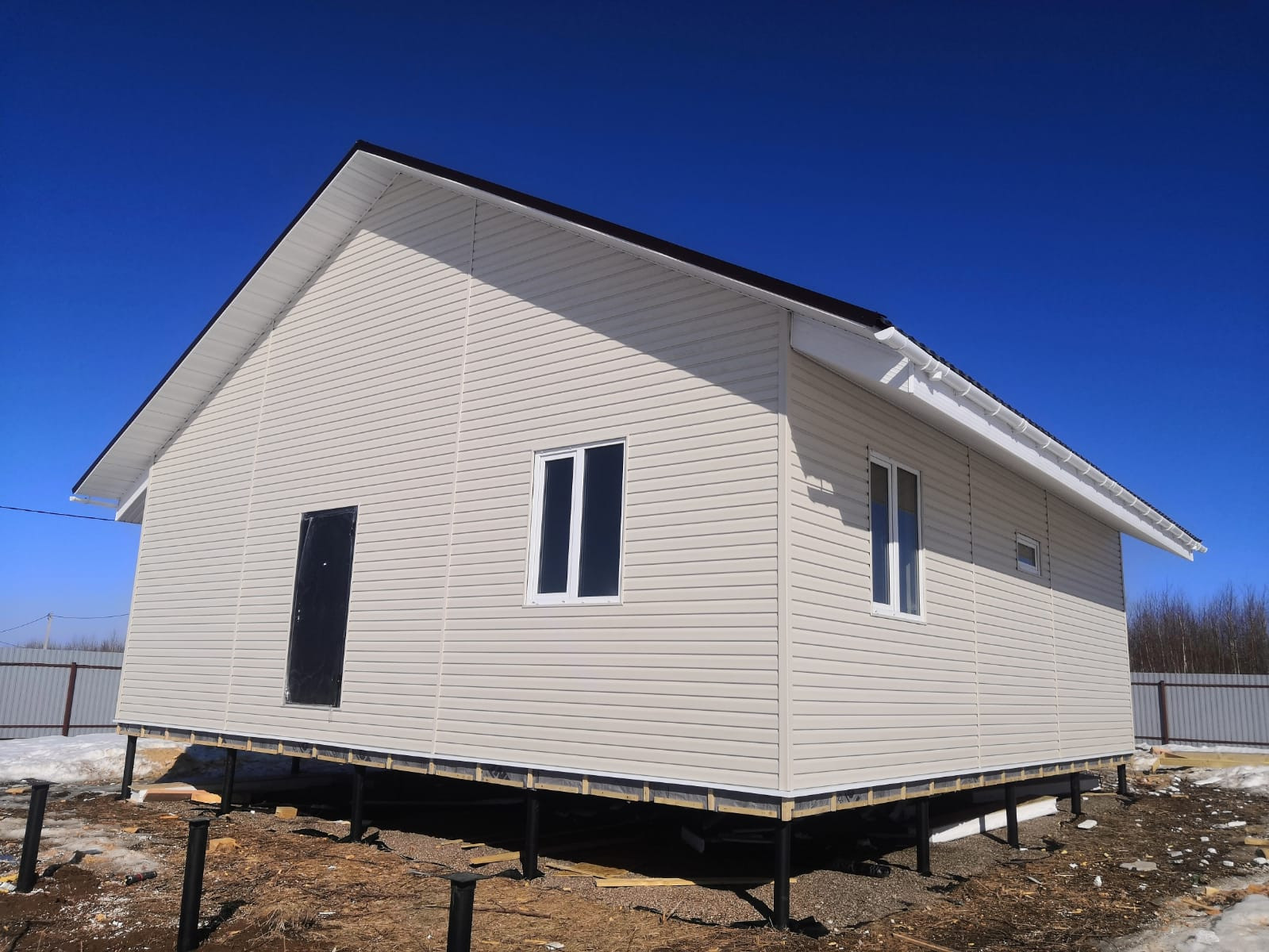 Установлены сваи для летней веранды во всю длину дома, размером 10х3 метра.