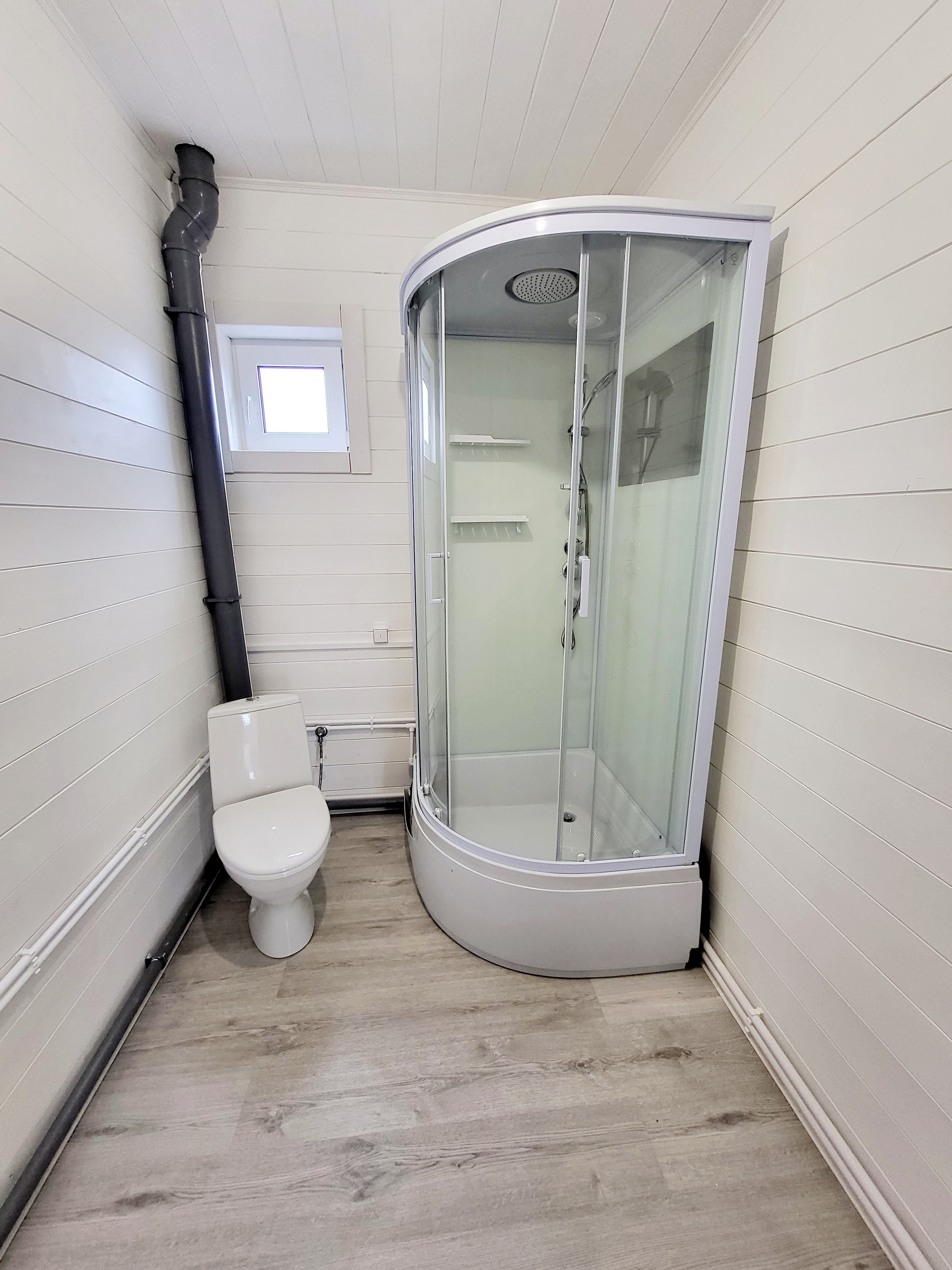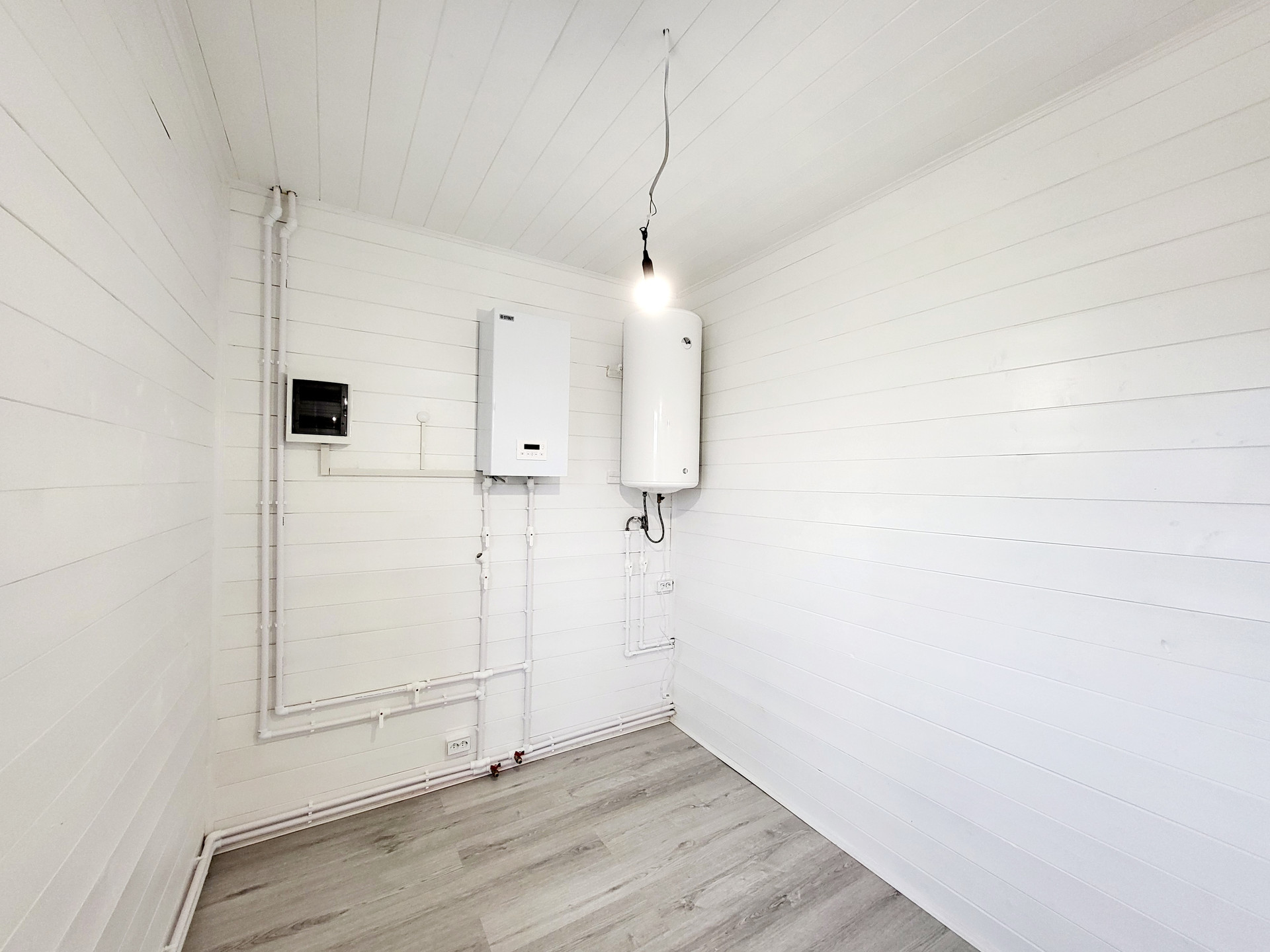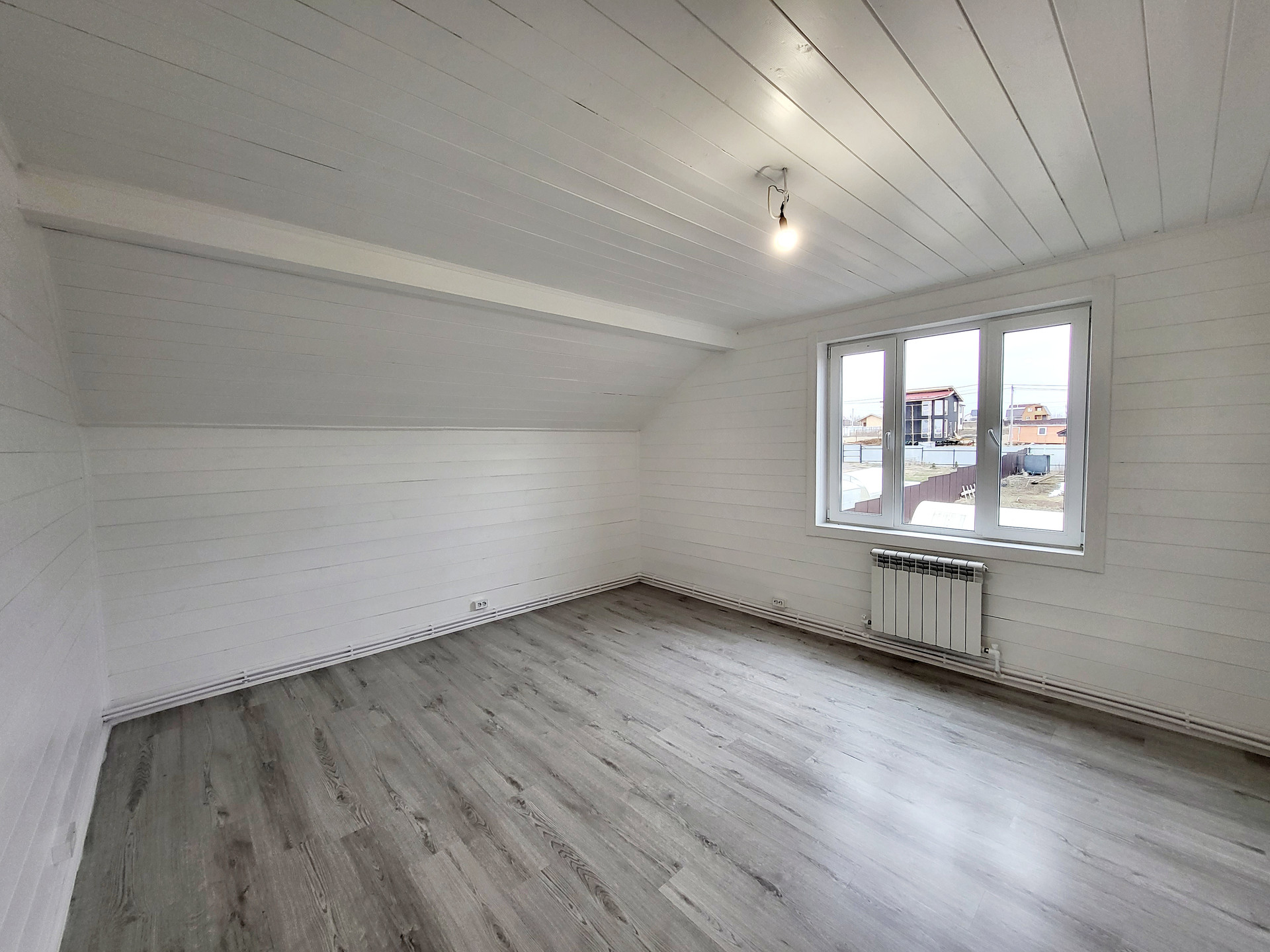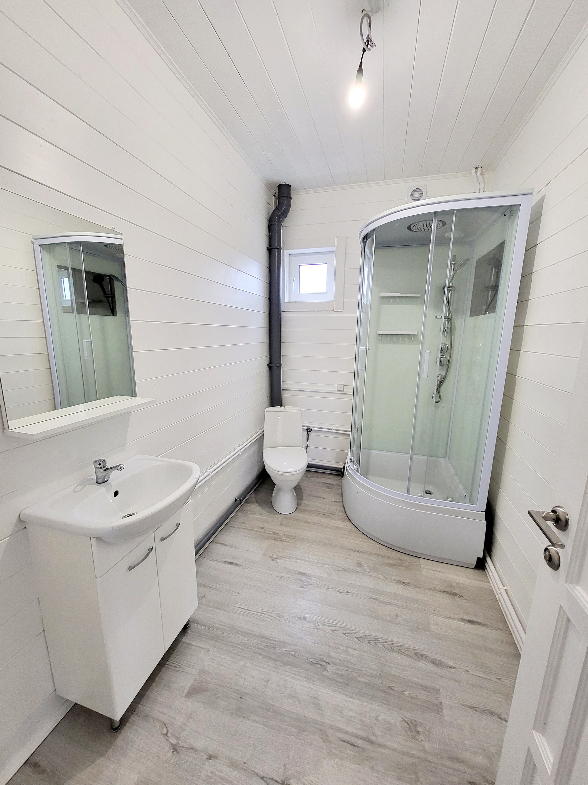 Дом построен по каркасной технологии, очень хорошо утеплен минеральными плитами (200мм). Крыша металлочерепица. Наружная отделка - виниловый сайдинг серого цвета. Внутренняя отделка - имитация бруса. Стены окрашены в белый цвет, на пол уложен ламинат. Пластиковые двух камерные окна. Заведены и подключены все коммуникации. Полностью выполнена и запущена система отопления, водоснабжения и канализация. Электричество 15 кВт, сельский тариф на электроэнергию. Сделана разводка электричества в доме (освещение, розетки, выключатели). Септик Топаз. В санузле первого этажа установлены раковина, унитаз и душ, в санузле второго этажа - унитаз.