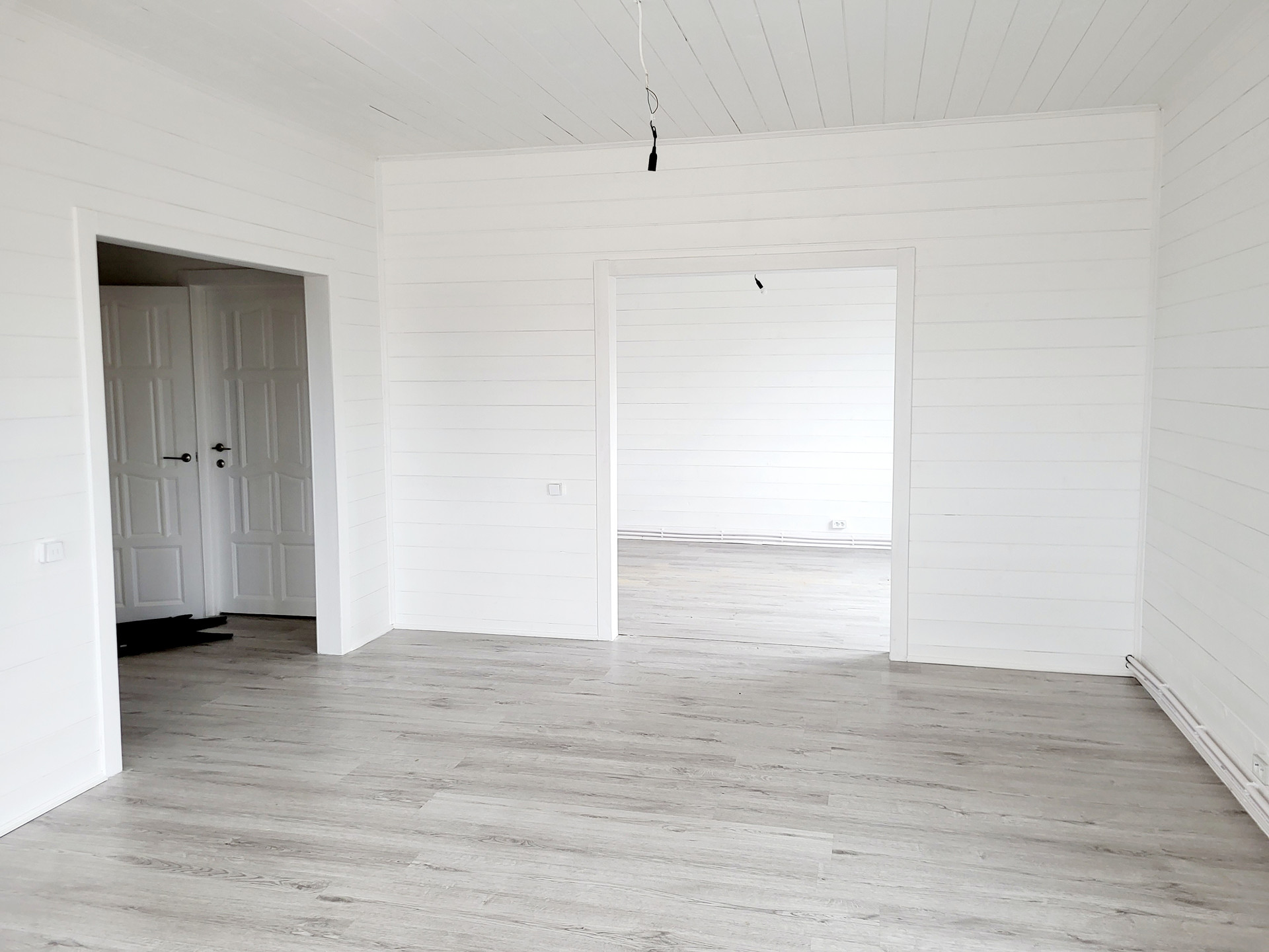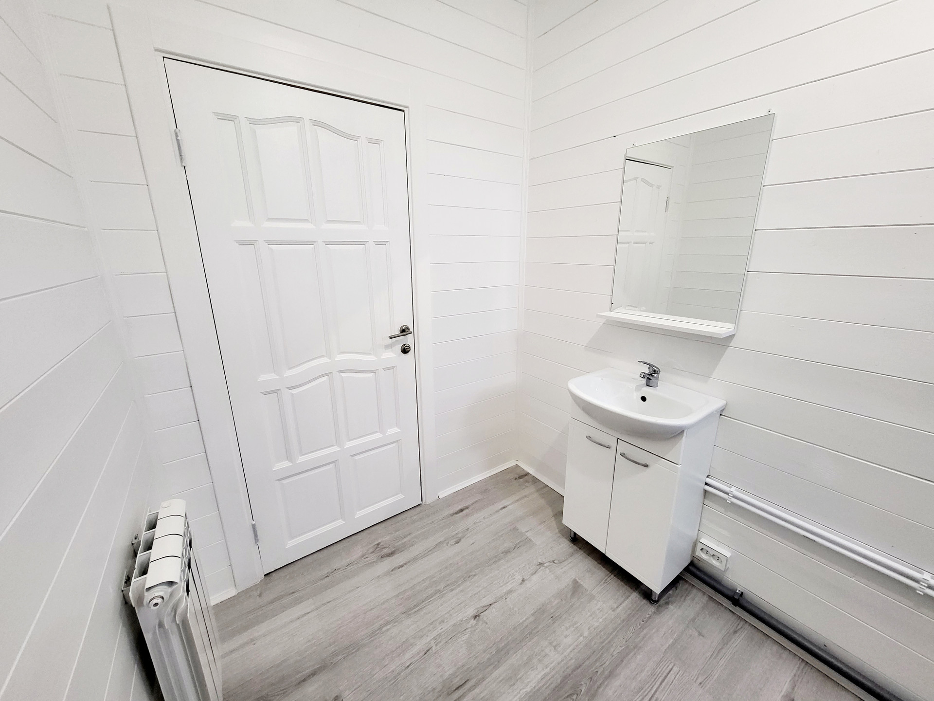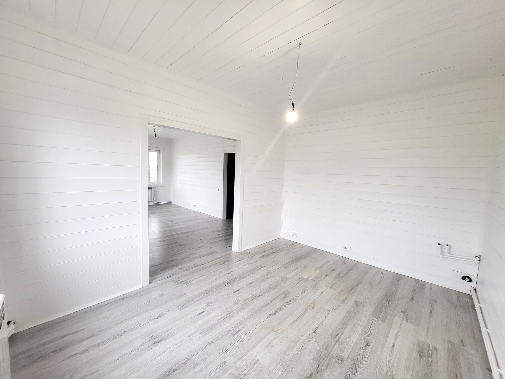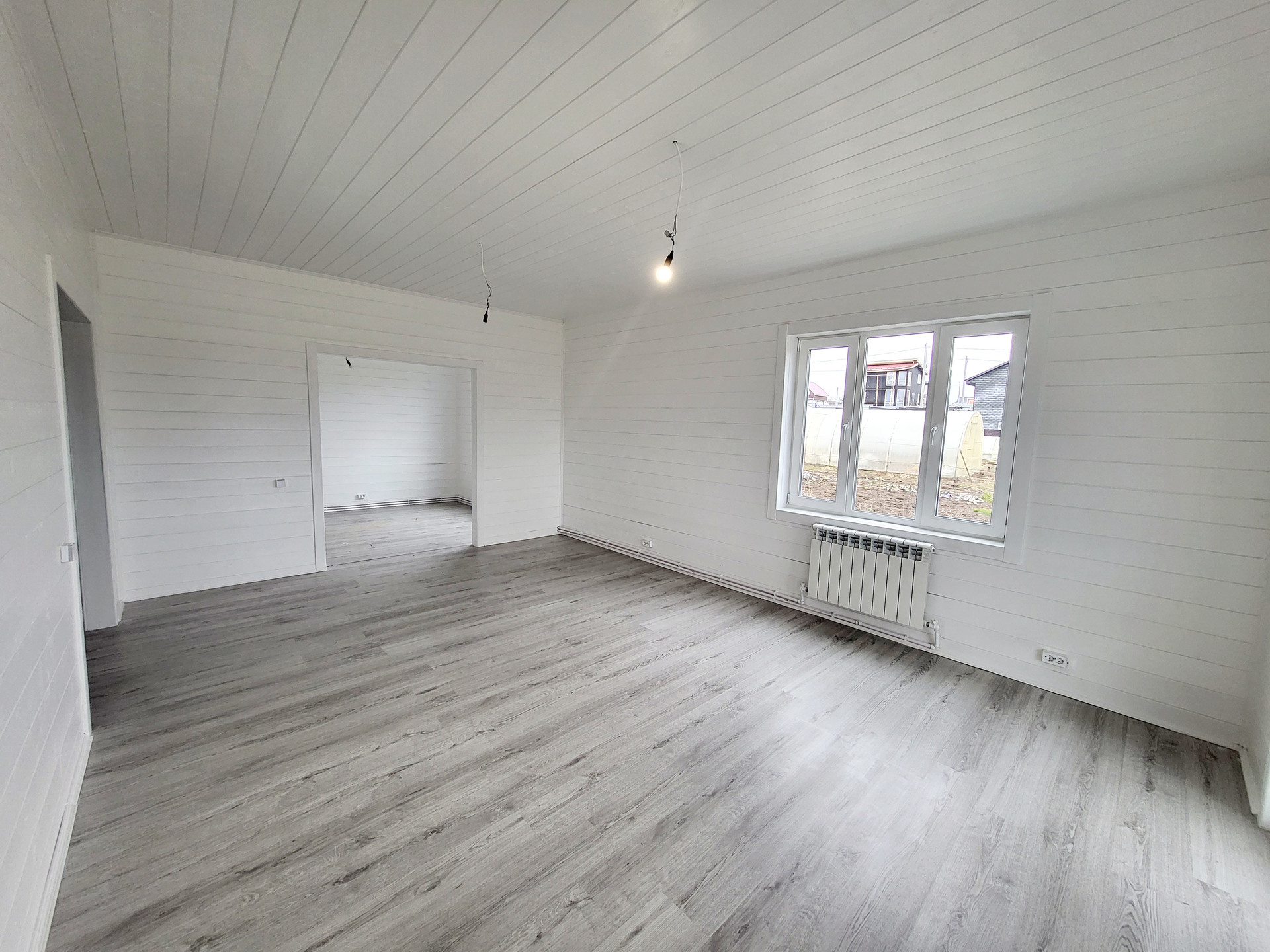 Дом построен по каркасной технологии, очень хорошо утеплен минеральными плитами (200мм). Крыша металлочерепица. Наружная отделка - виниловый сайдинг серого цвета. Внутренняя отделка - имитация бруса. Стены окрашены в белый цвет, на пол уложен ламинат. Пластиковые двух камерные окна. Заведены и подключены все коммуникации. Полностью выполнена и запущена система отопления, водоснабжения и канализация. Электричество 15 кВт, сельский тариф на электроэнергию. Сделана разводка электричества в доме (освещение, розетки, выключатели). Септик Топаз. В санузле первого этажа установлены раковина, унитаз и душ, в санузле второго этажа - унитаз.