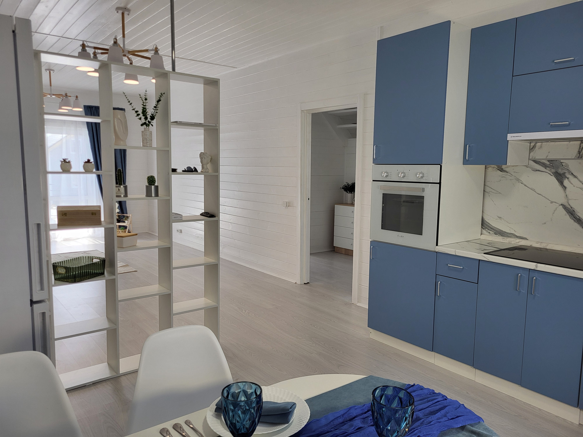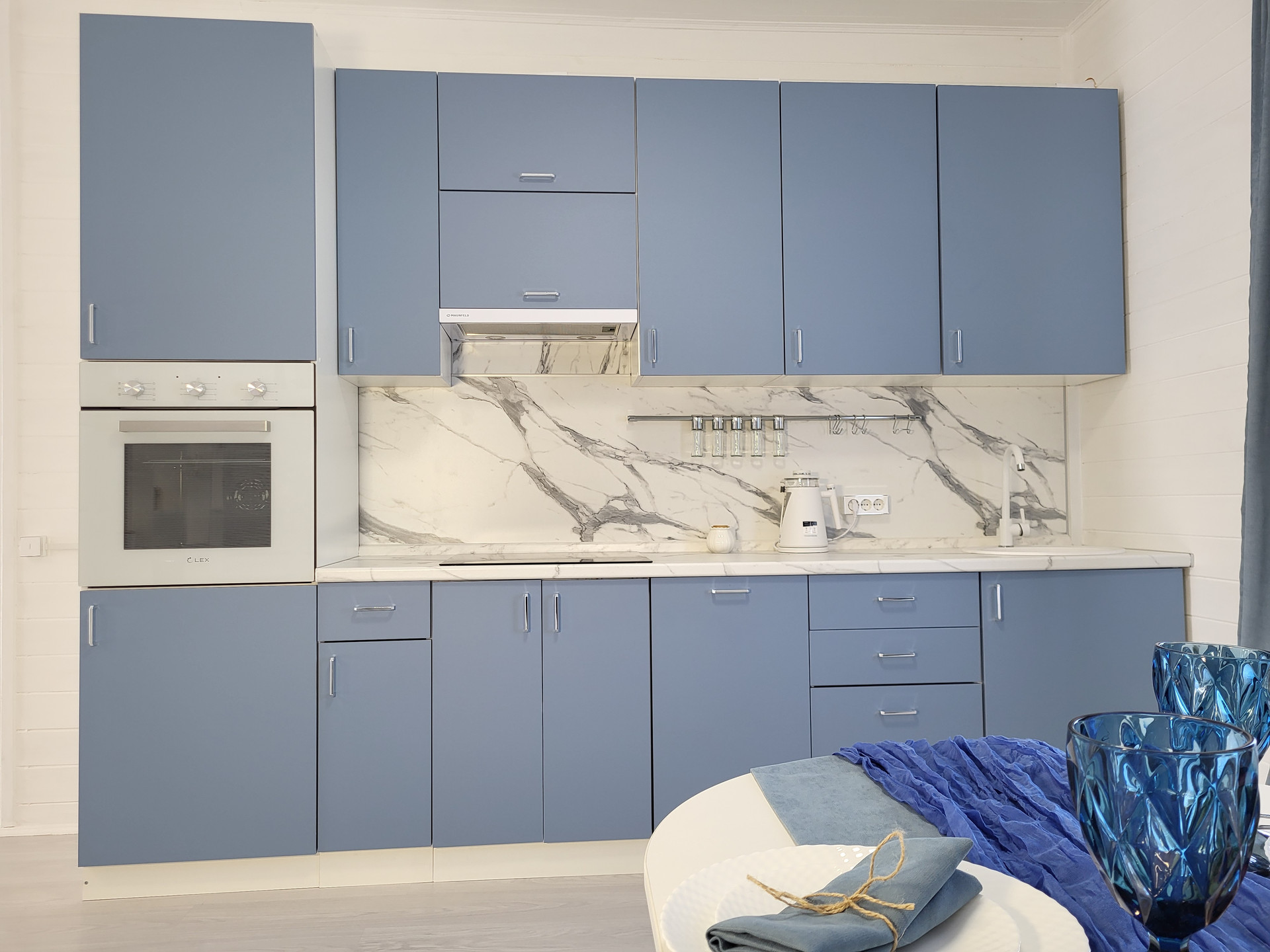 Кухня полностью укомплектована мебелью и техникой, в том числе посудомоечной машиной 45 см, чтобы минимум времени занимали повседневные хлопоты.
