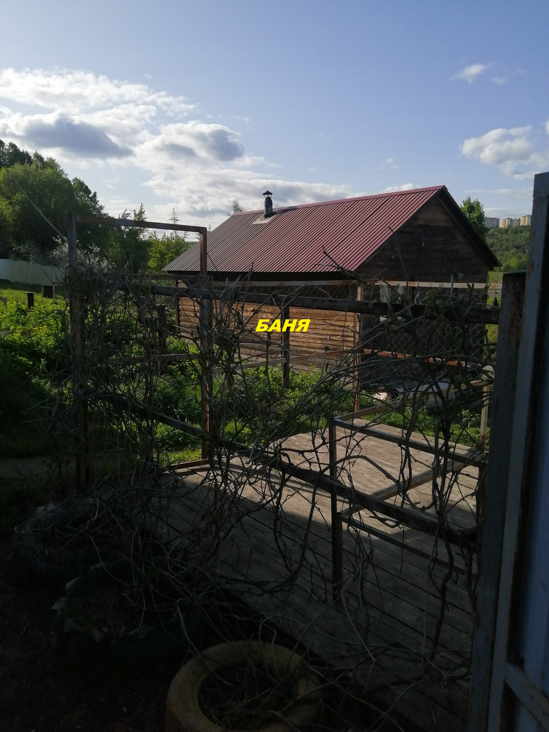 Около дома на т территории хорошая действующая баня.