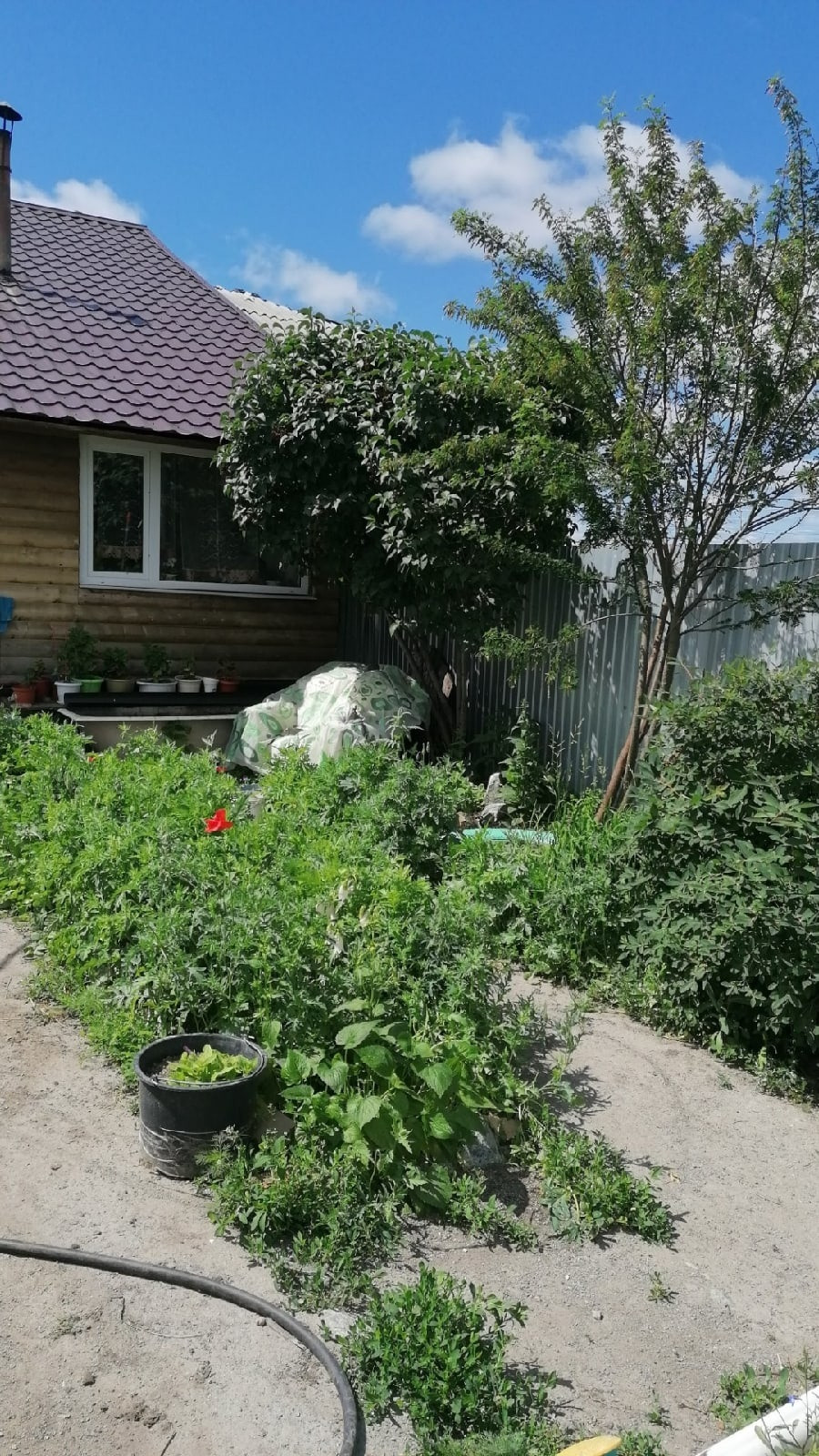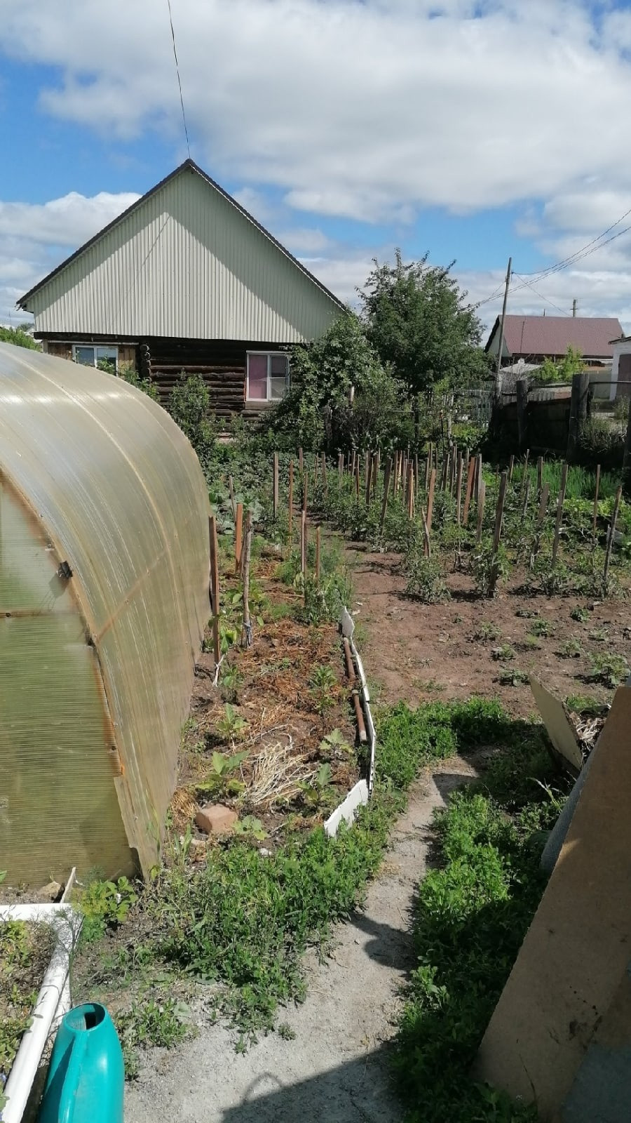 Есть небольшой участок для огорода с теплицей.