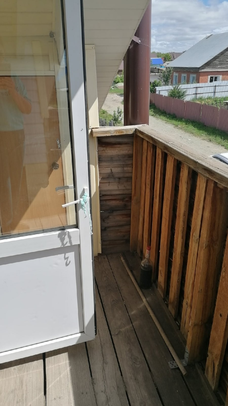 С балкона второго этажа есть лестница вниз на улицу.