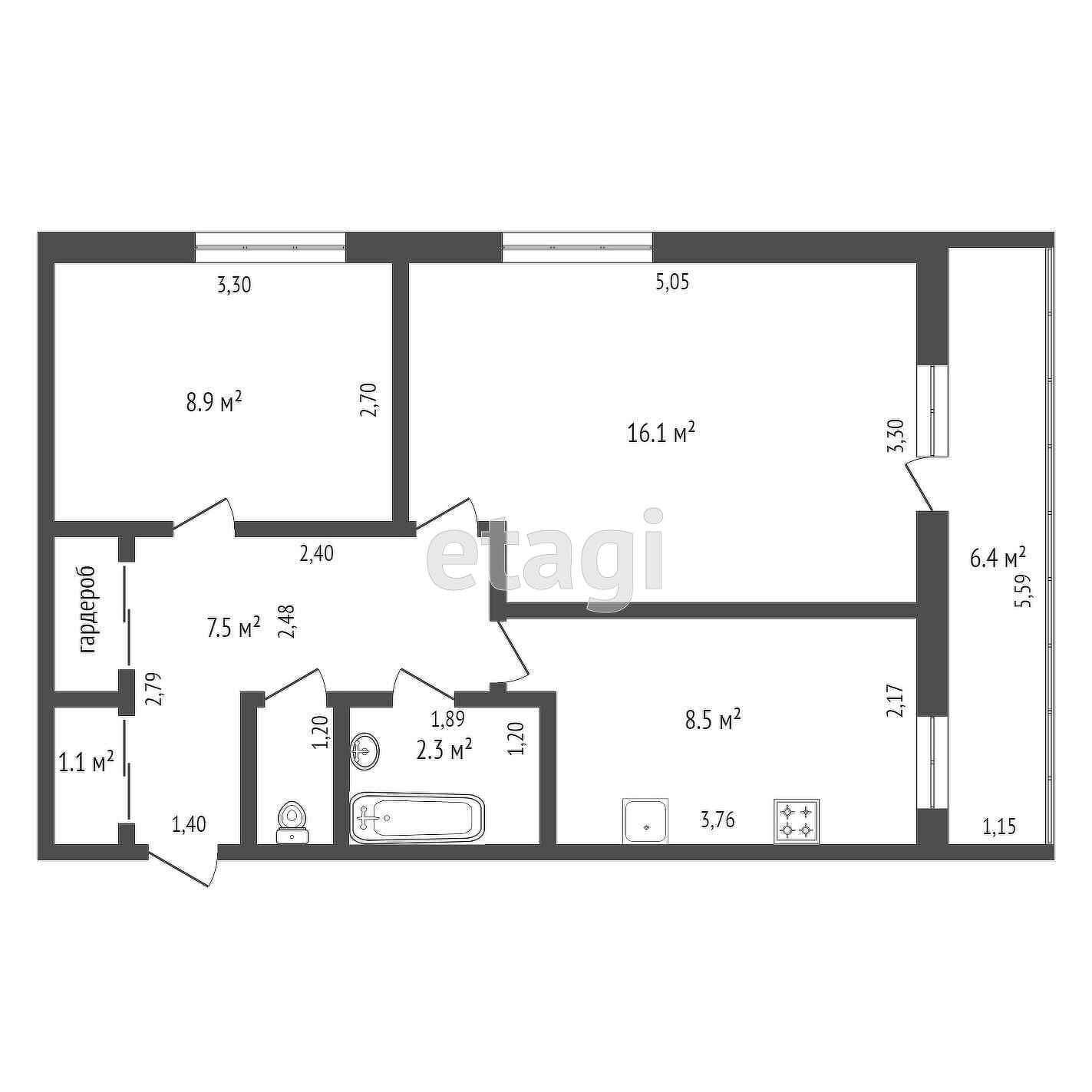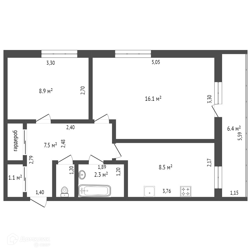 Общая площадь 45 м2