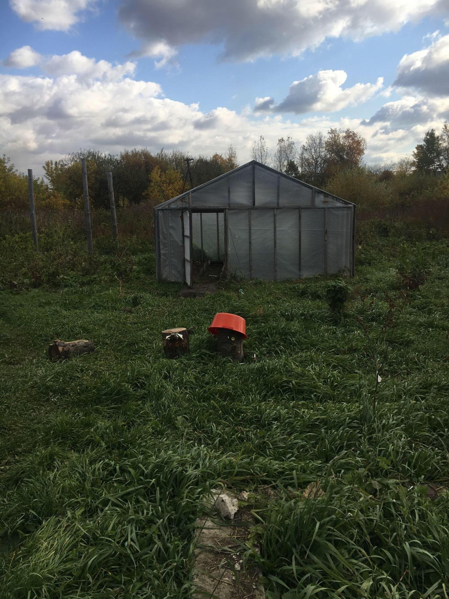 Теплица сделанная,огород,саженцы яблоня,вишня,чёрная смородина.