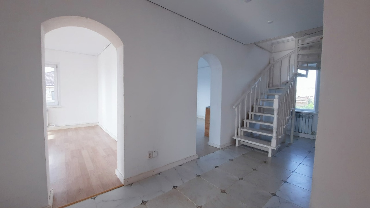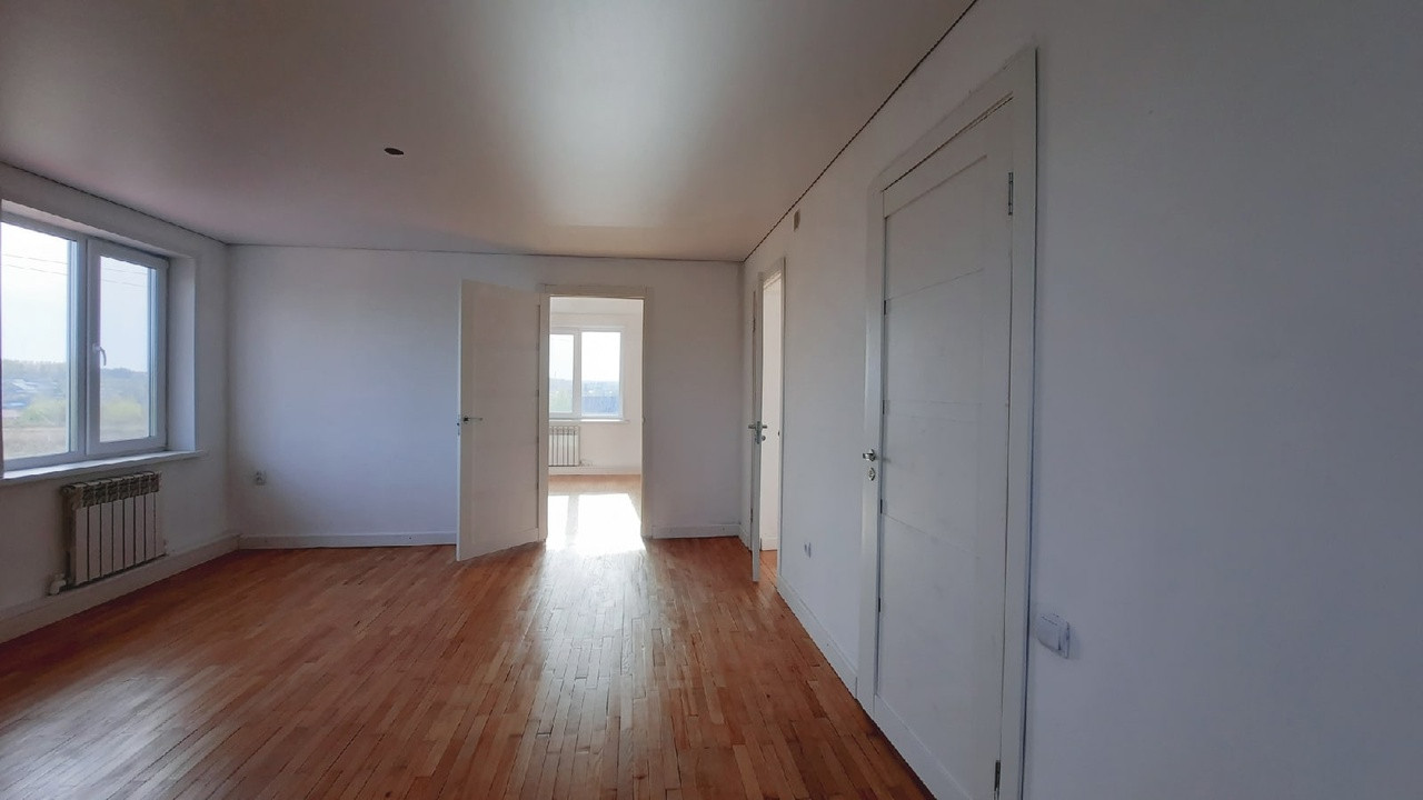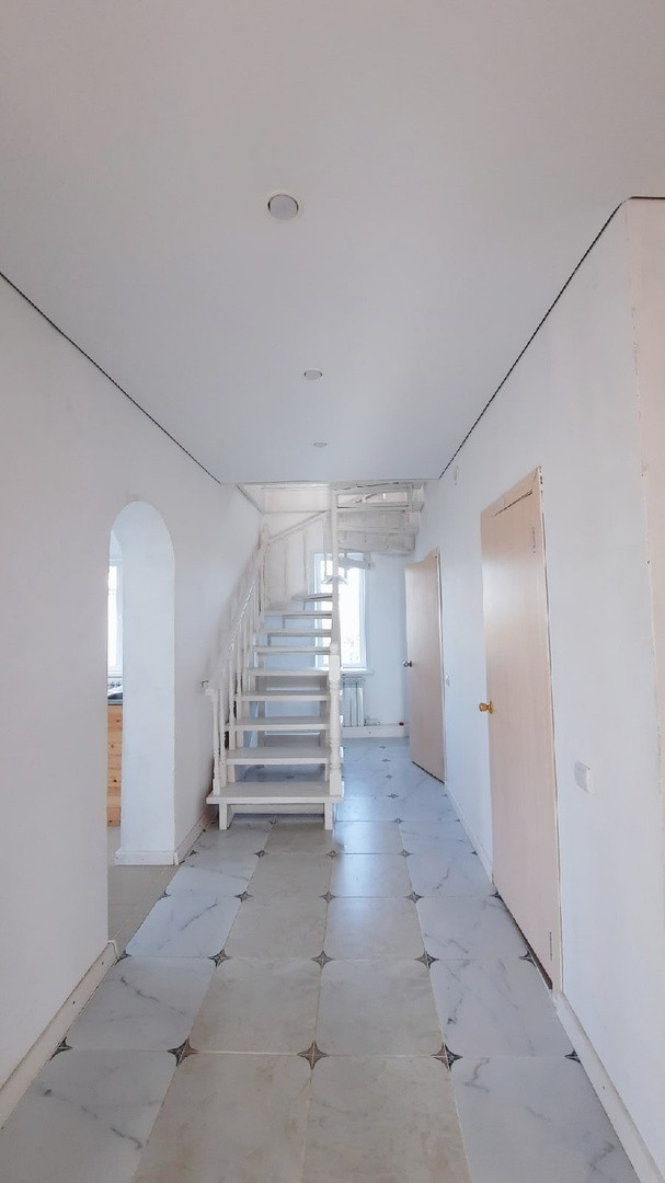Стены ровные, на полу хороший ламинат, на 2 этаже паркет. Потолки натяжные, двери везде качественные.