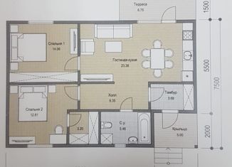 Лучшее предложение ! Предлагаем уютный ,светлый дом, 2 спальни и кухня гостиная 24 кв.м,терраса 7кв.м! Площадь дома -68,6 кв.м один этаж. Ленточный ж/б фундамент. Стены - газобетон толщиной 300 мм., утеплитель - 50 мм и облицовочный кирпич , межкомнатные перегородки – кирпич. Кровля ондулин не шумит, не греется, не ржавеет, Теплые полы по всему периметр... |