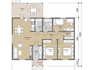 Проект уютного дома. Небольшая площадь дома, простая форма, двухскатная кровля. Большая кухня-гостиная 30,58 м2 с выходом на террасу. Две комнаты, также имеющие выход на террасу. А также рядом расположенный санузел, который по желанию можно сделать раздельным. При желании хозяев кухня может быть отделена от гостиной перегородкой или раздвижными дверьми... |