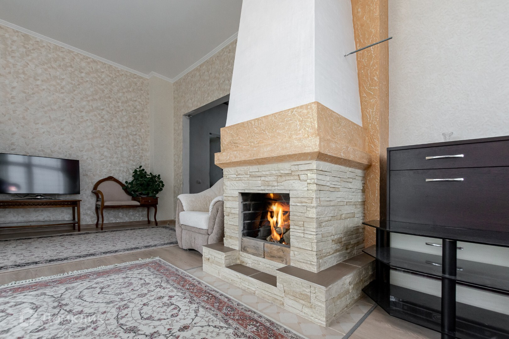 на первом жилом этаже: кухня-столовая просторная с двумя окнами, гостиная с камином - идеальное место где можно собраться семьей, просторный холл с широкой лестницей на второй этаж и цоколь, санузел с окном, на втором этаже: три спальни и просторная ванная комната с окном, из каждого панорамного окна - красивый пейзаж, цоколь: полноценный этаж свободной планировки готов для обустройства спортзала, сауны, бильярдной, музыкальной или фотостудии - площадь позволяет, здесь же вход в погреб, котельная.