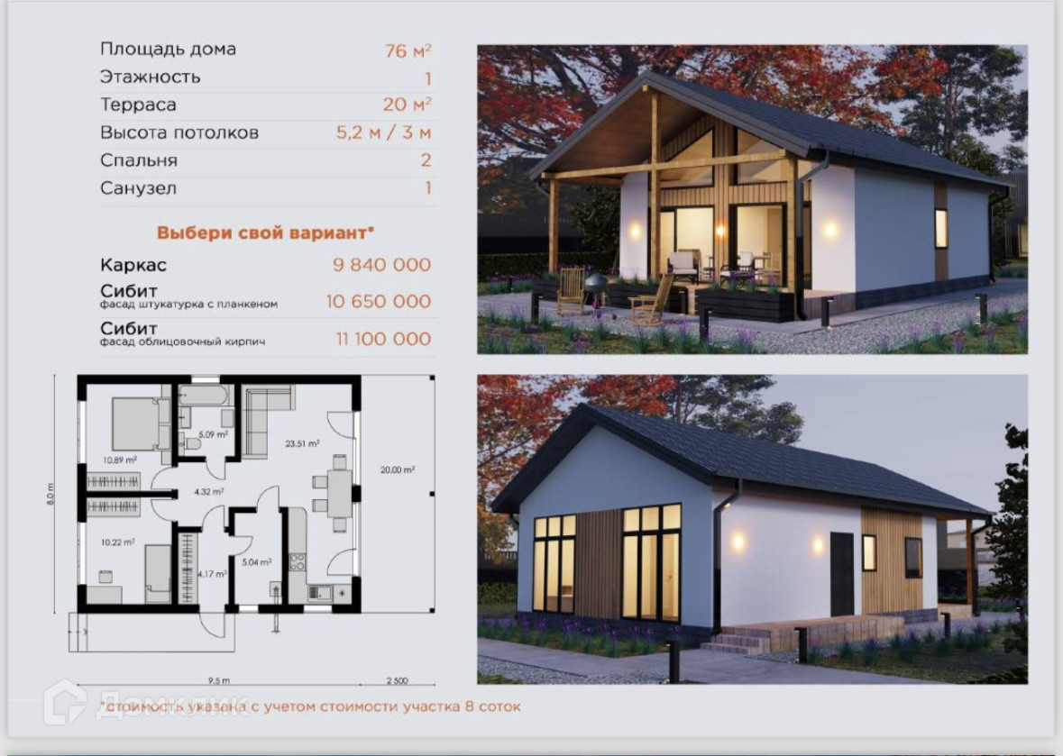 Общая площадь 76 м2