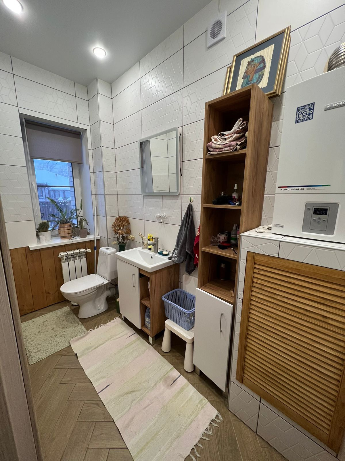 Пол с подогревом. Зона гардероба. 4 комнаты. Сан-узел на первом этаже и ванная комната с сан-узлом на втором.