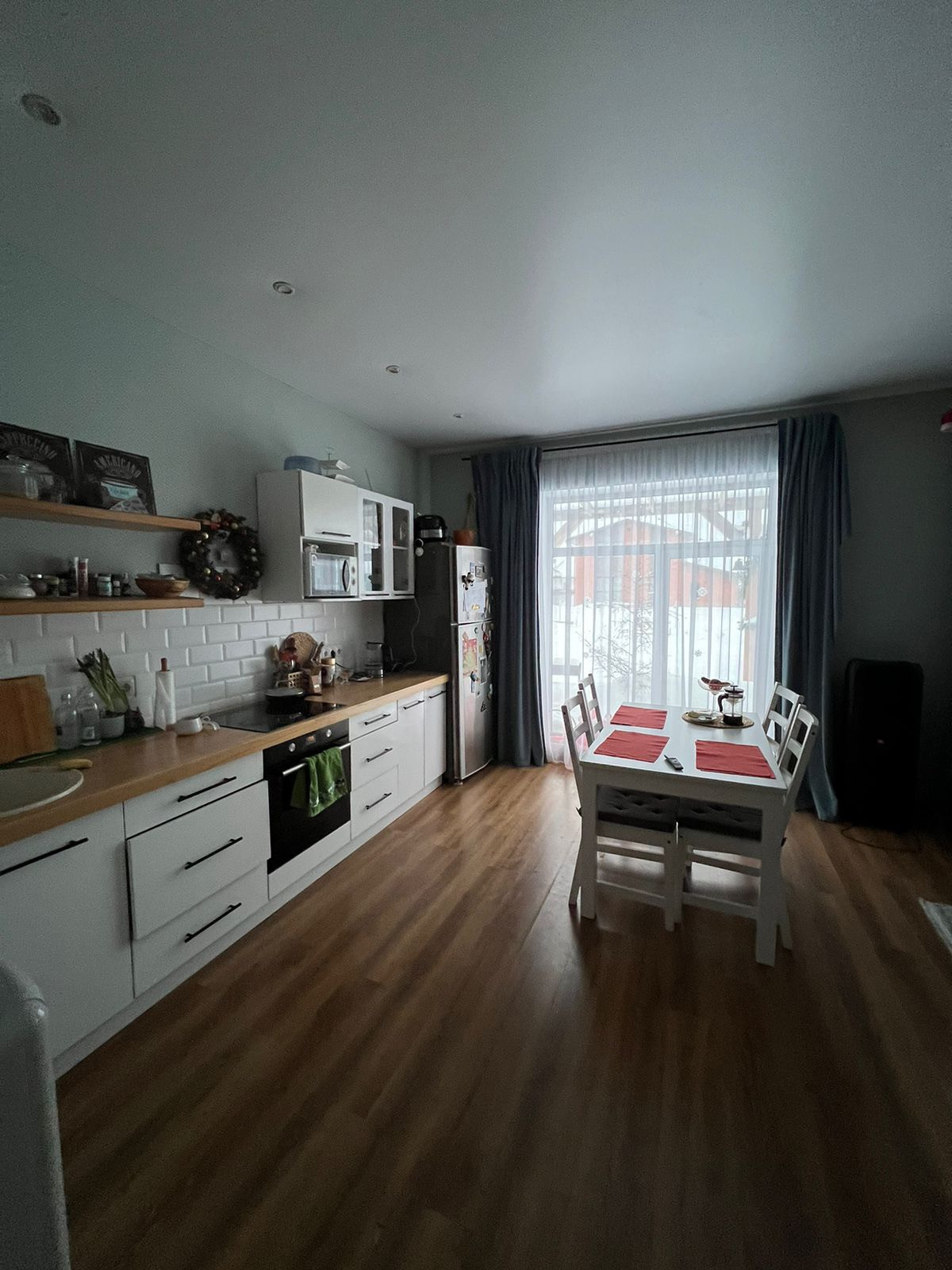 Уютный таунхаус в с. Фирсово. Полностью с ремонтом. Есть терраса из бруса, небольшой огород, детская горка. Дом обнесён забором, уложена брусчатка.