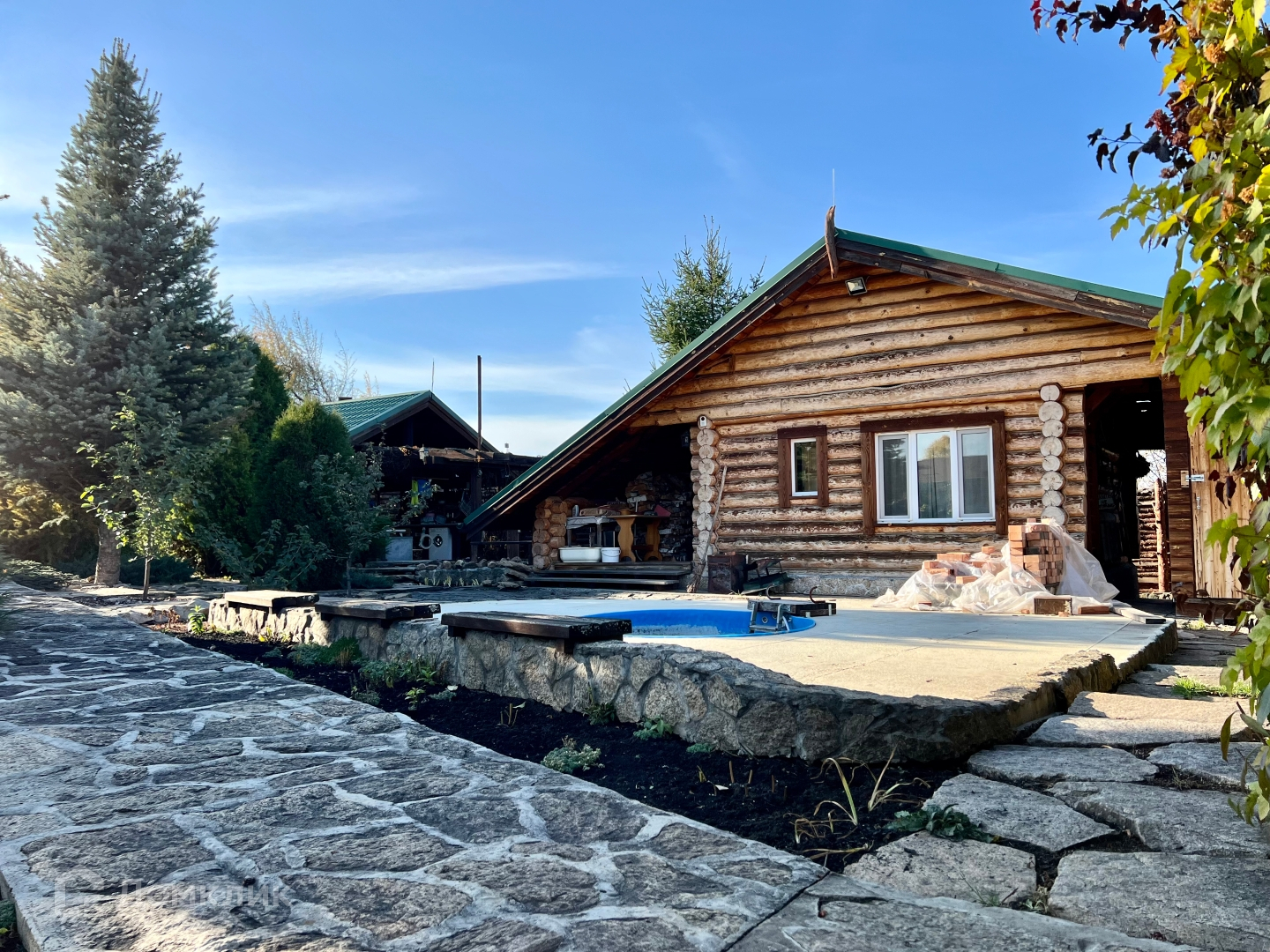 Территория очень ухожена, есть летняя кухня, баня с новой печью, бассейн и место для ведения садоводства.