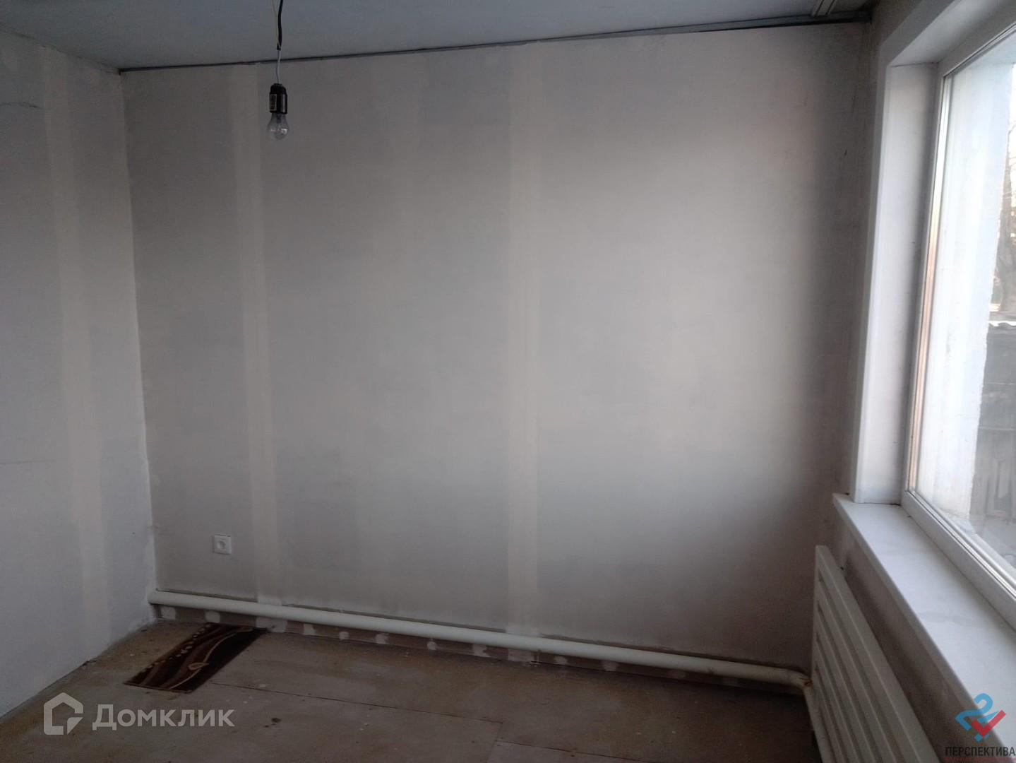 - выровнен пол, стены обшиты гипсом, новое отопление,
