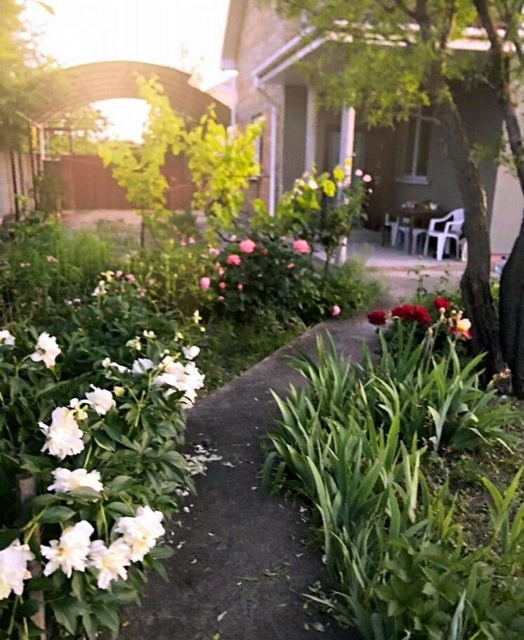 —     Просторный ухоженный участок с плодовыми деревьями и цветущими растениями.