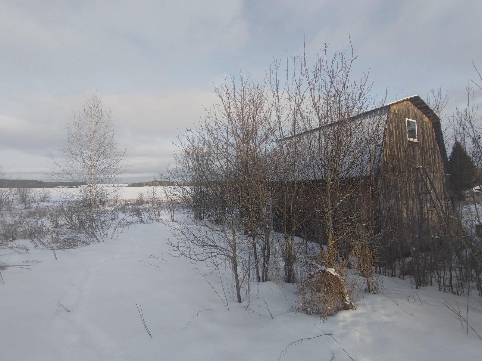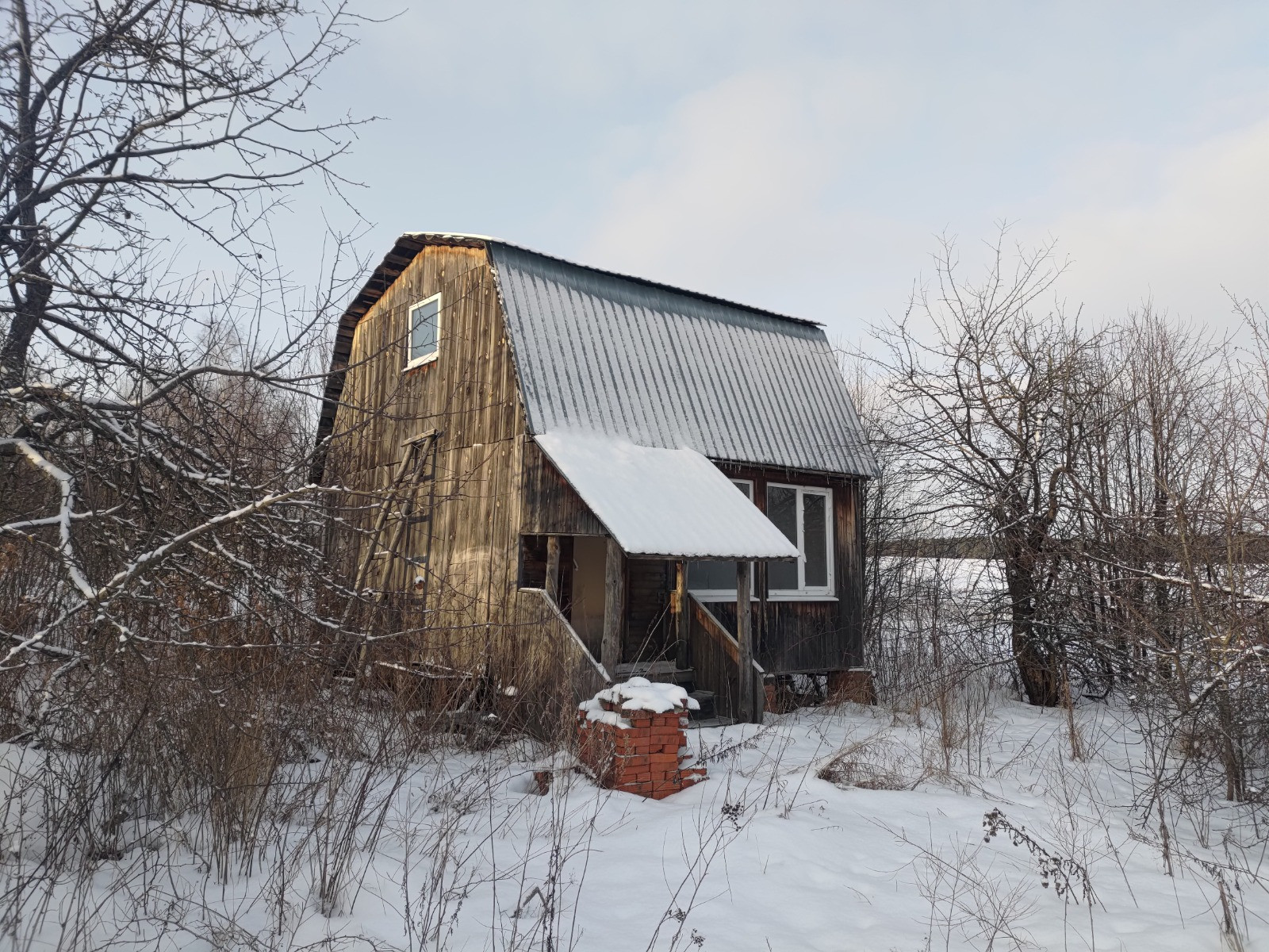 Дом отдельно стоящий, бревенчатый, одноэтажный с мансардным этажом. О/п 22 кв.м.. Коммуникации: электричество, вода и газ баллонный в доме. Участок ровный, прямоугольный, огорожен. До леса около 300 м (грибные  и ягодные места), река Большая Смедва. До города Озёры 13 км.