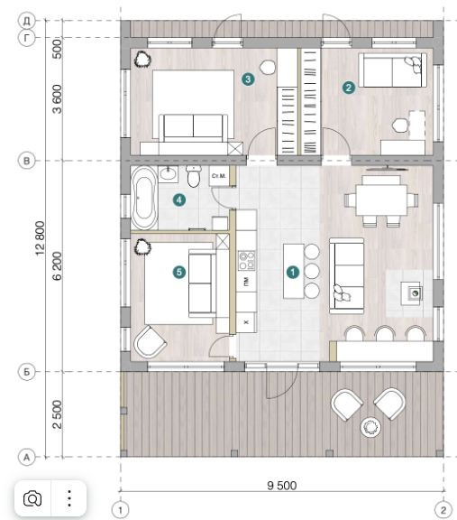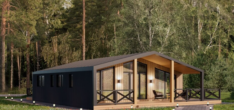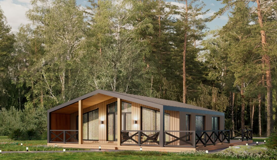 Уютный дом площадью 78м, где в общей кухне-гостинной можно посидеть у камина и собраться с самыми близкими. Так же в доме заложены 3 спальни и санузел. Организовать помещения на данной площади можно учитывая ваши пожелания: например, спланировав кабинет вместо спальни.