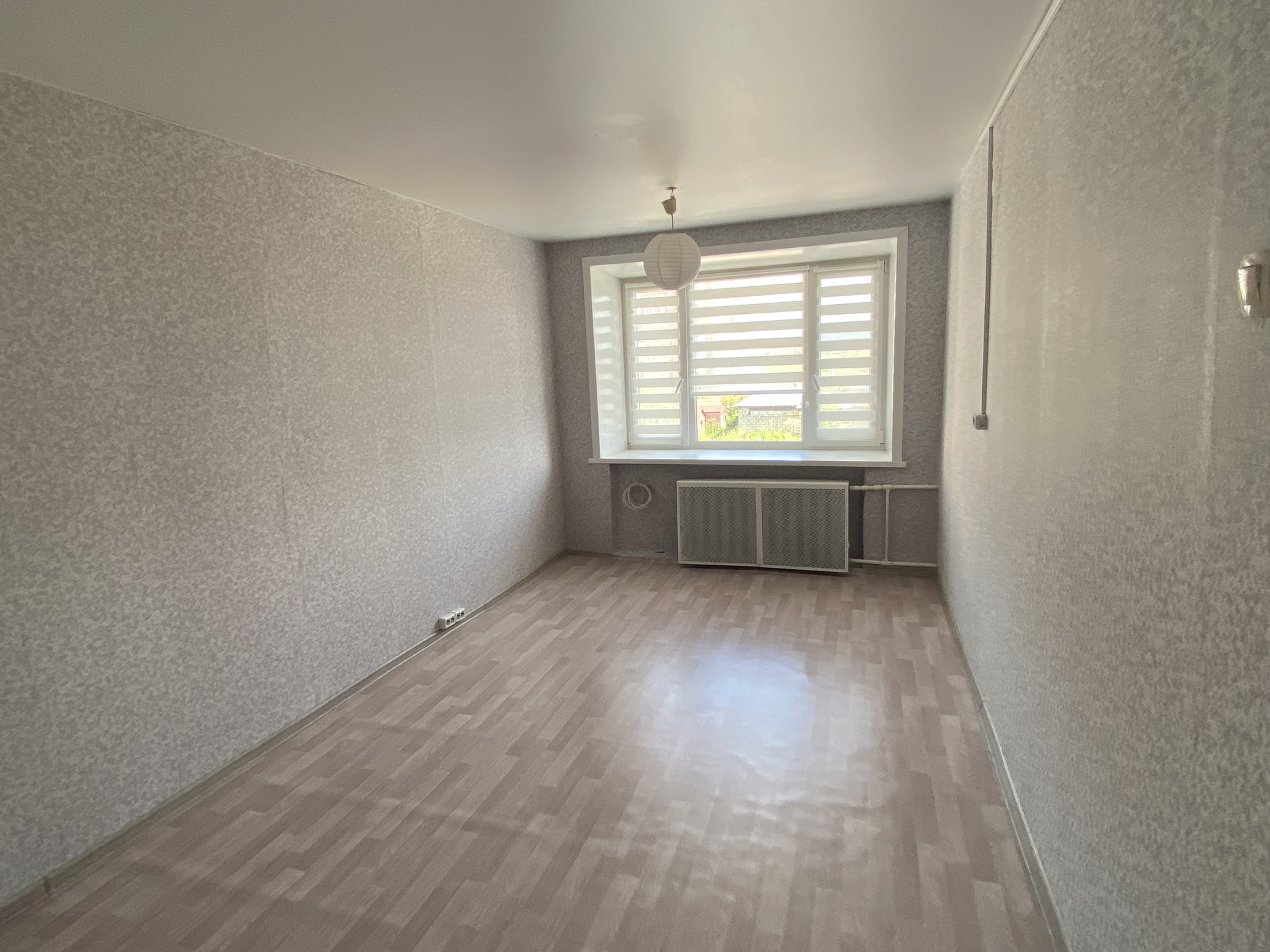 Состояние комнаты хорошее, заменена входная дверь, стеклопакет, натяжной потолок, сделан ремонт в спокойных светлых тонах, остается кухонный гарнитур.