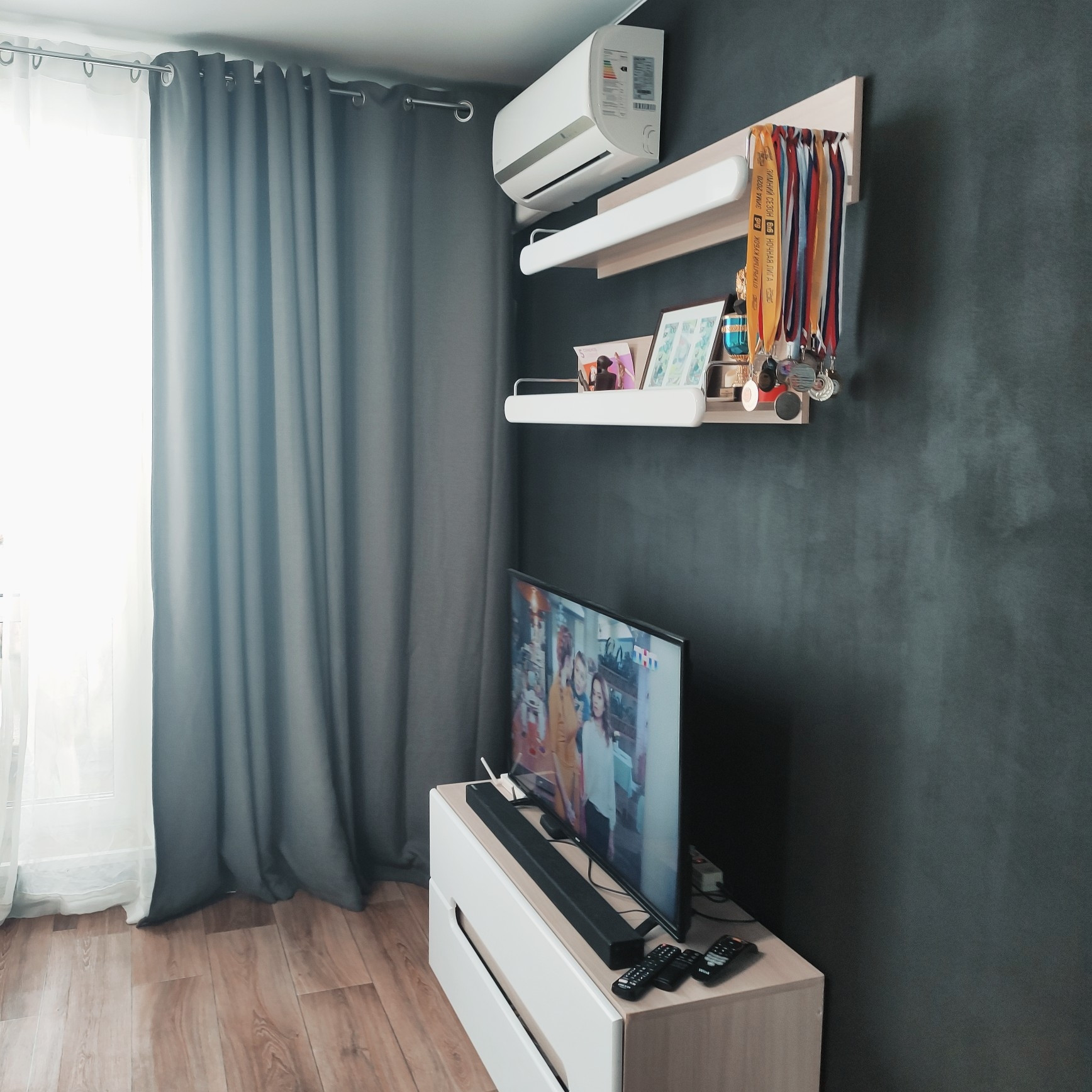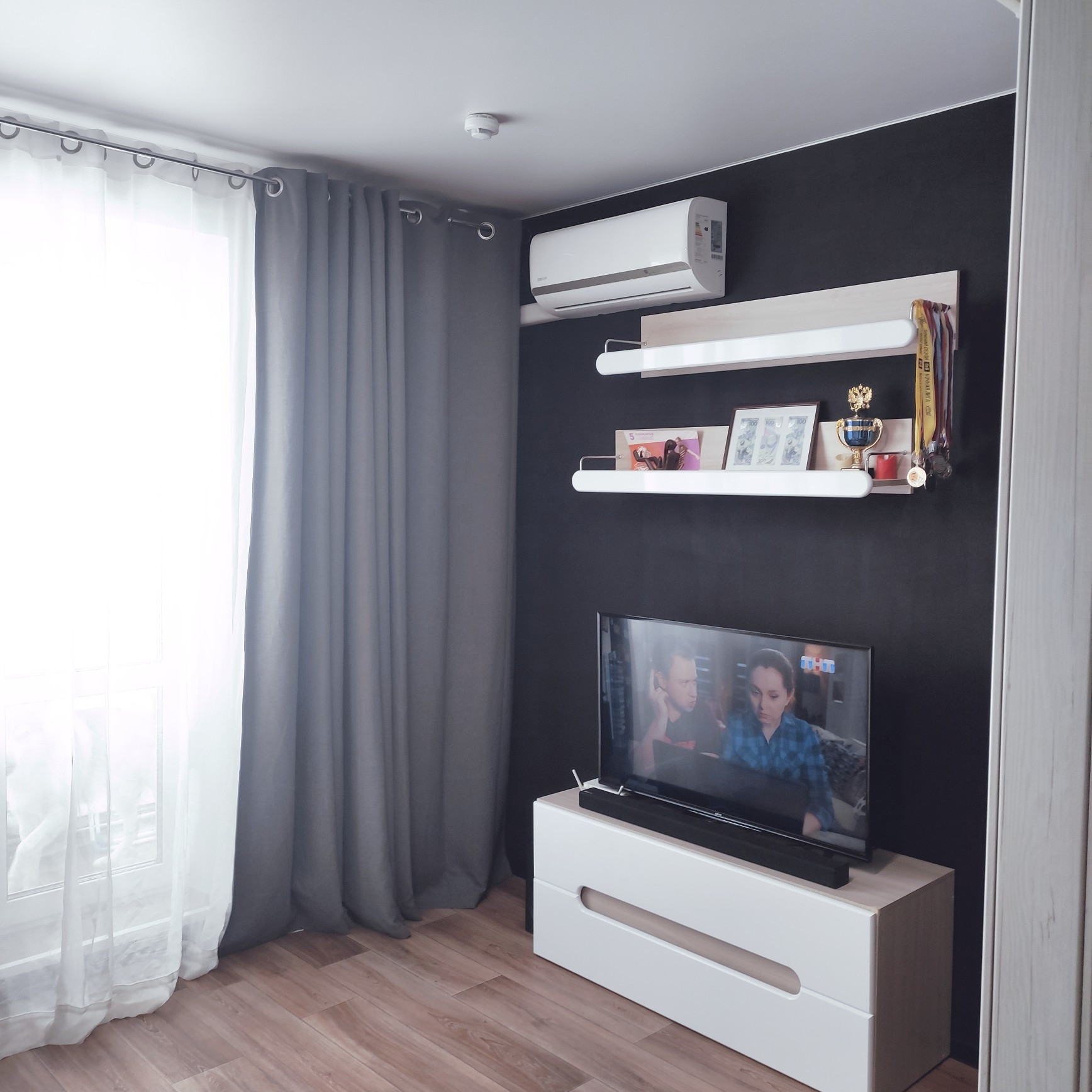 зонирование большой комнаты (23 кв.м) на отдельную гостиную и спальню,