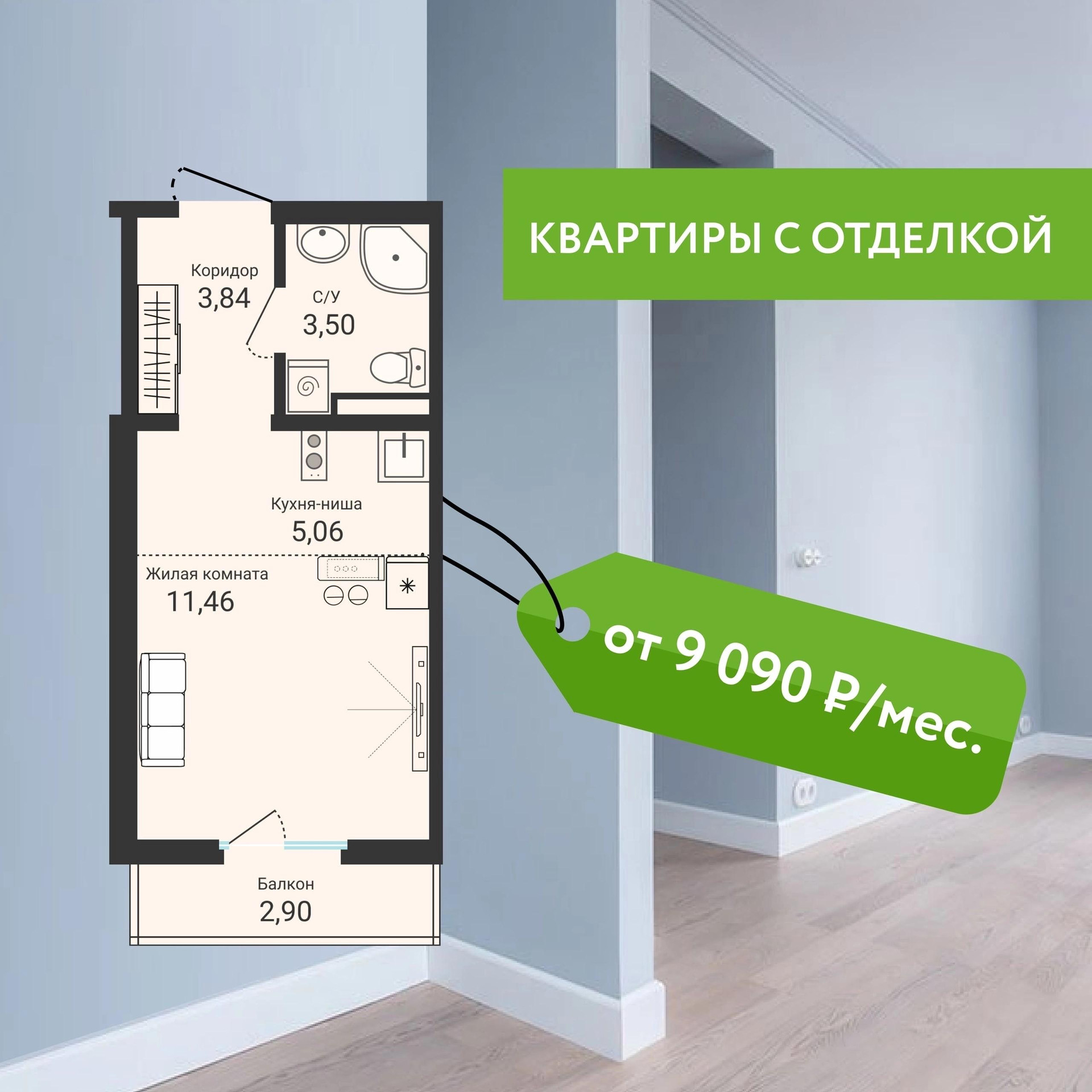 Квартира с готовой чистовой отделкой от 9 090 рублей в месяц – это реально?