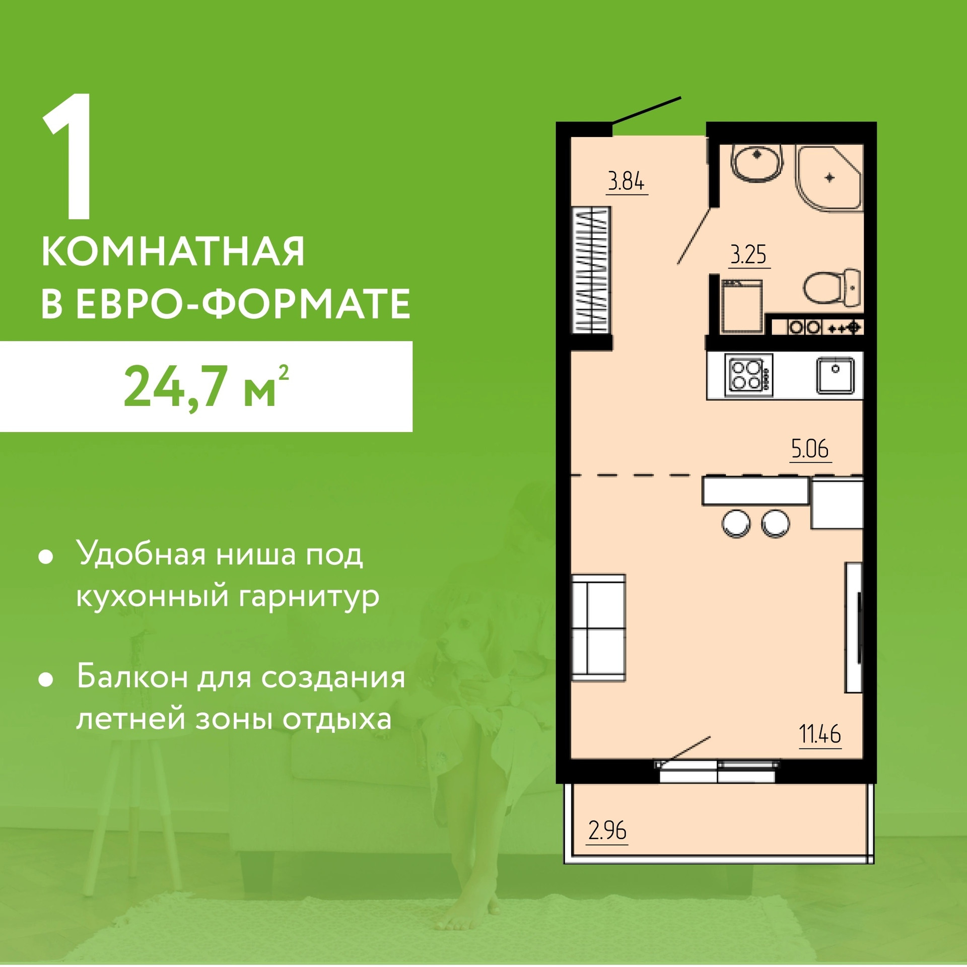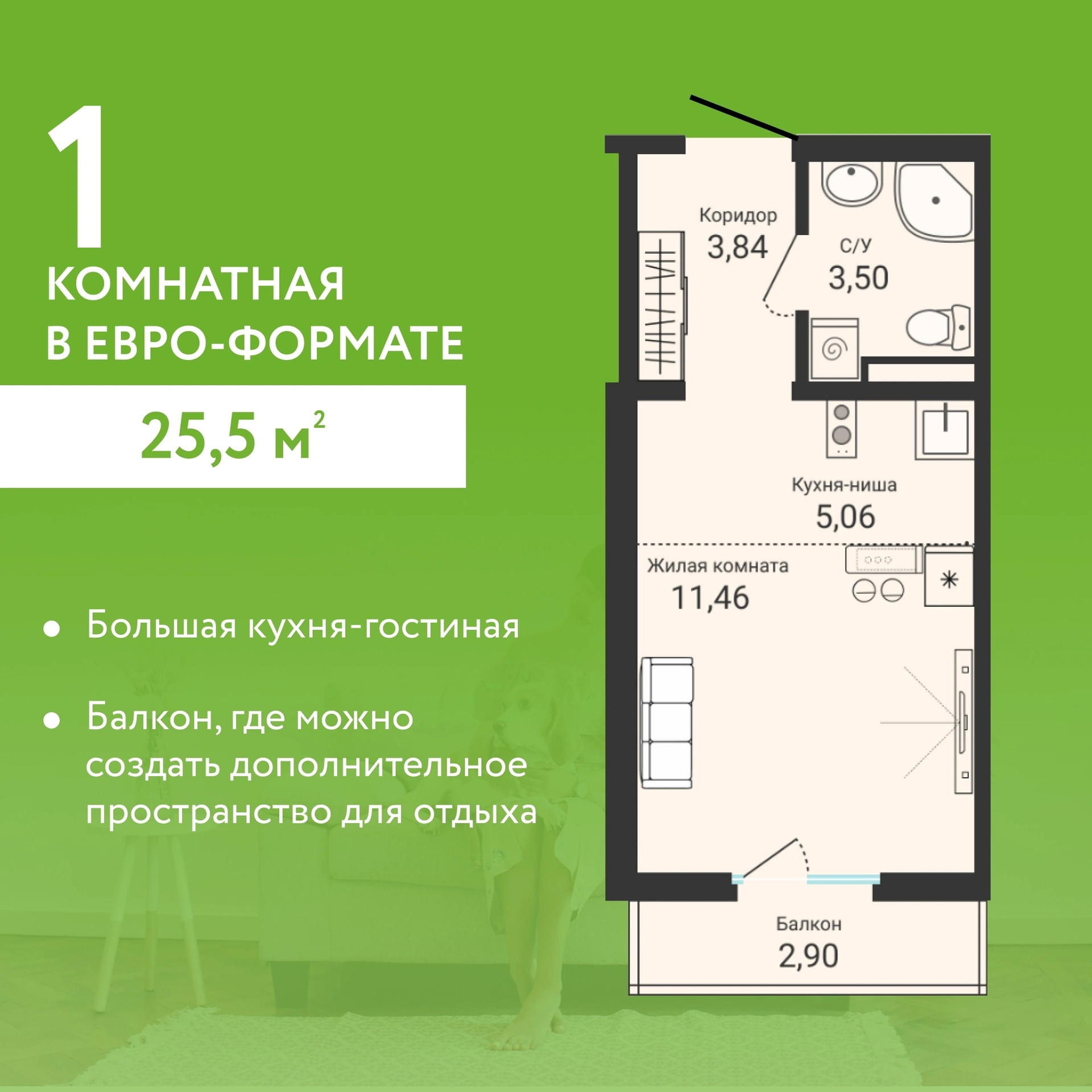 Общая площадь 26 м2