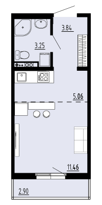 Квартира студийного формата – идеальный вариант для тех, кто начинает самостоятельную жизнь. Её продуманная планировка включает в себя: