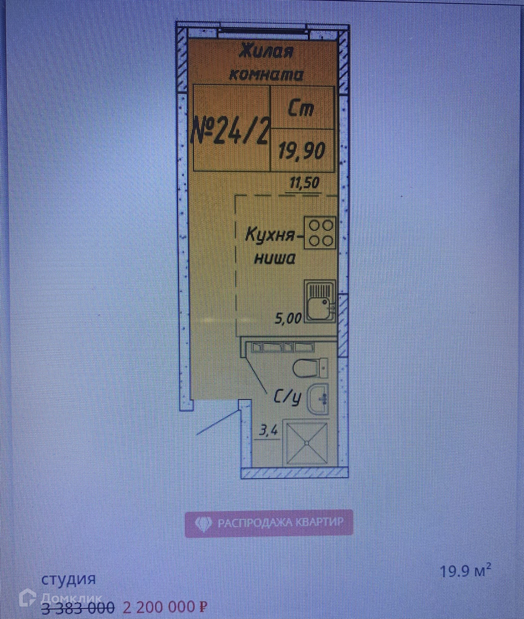 Общая площадь 19.9 м2
