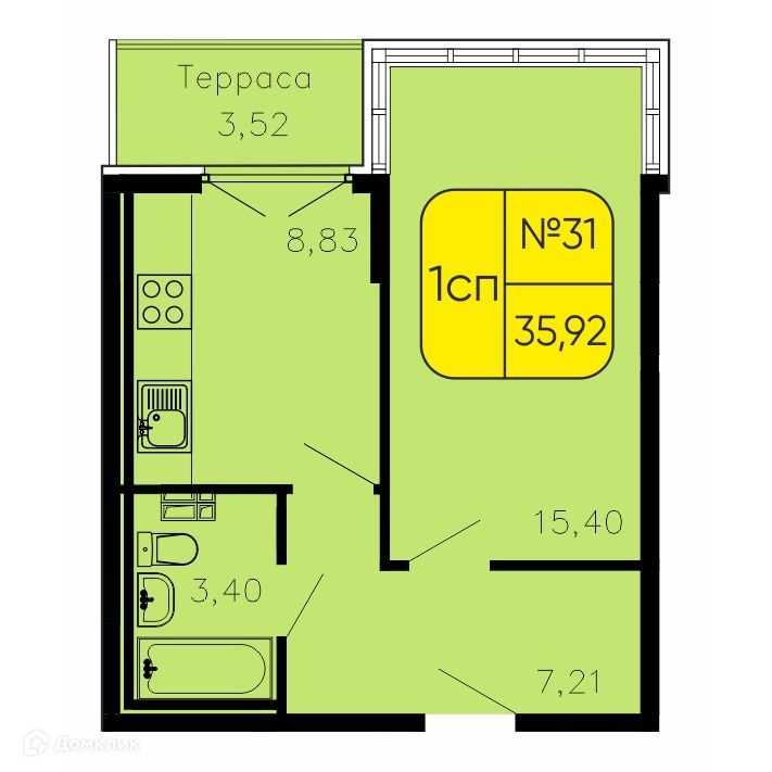 Общая площадь 35.92 м2