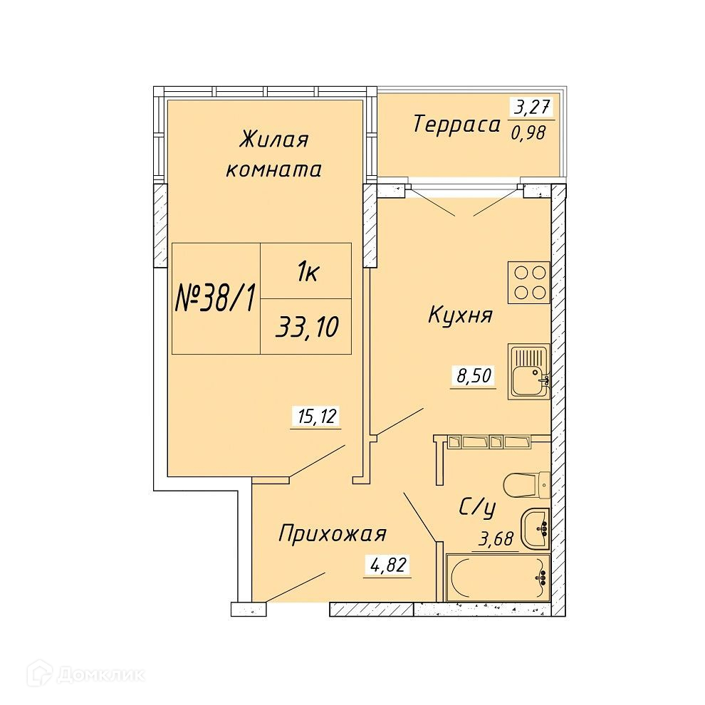 Общая площадь 33.1 м2