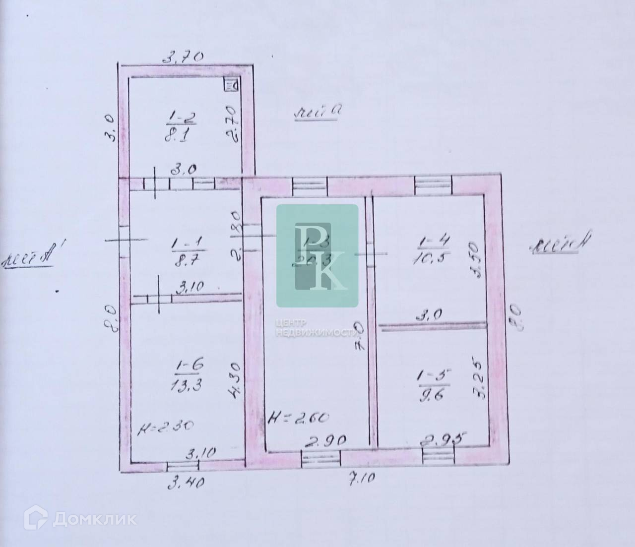 -Высота потолка: 2,6 м