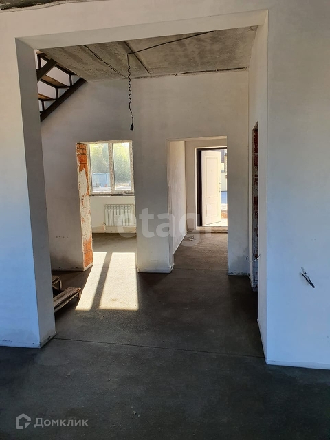 Все коммуникации подключены в дом, тёплые полы по всему первому этажу и в зоне санузла на втором этаже, залита стяжка, а так же железный каркас лестницы на 2-й этаж, предчистовая отделка внутри дома, стены подготовлены под обои, проведена вся электрика и отопление.